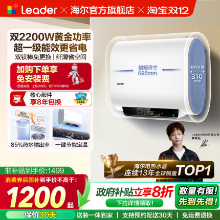 [国家补贴]海尔智家统帅电热水器双胆60升大容量家用洗澡F3MINI