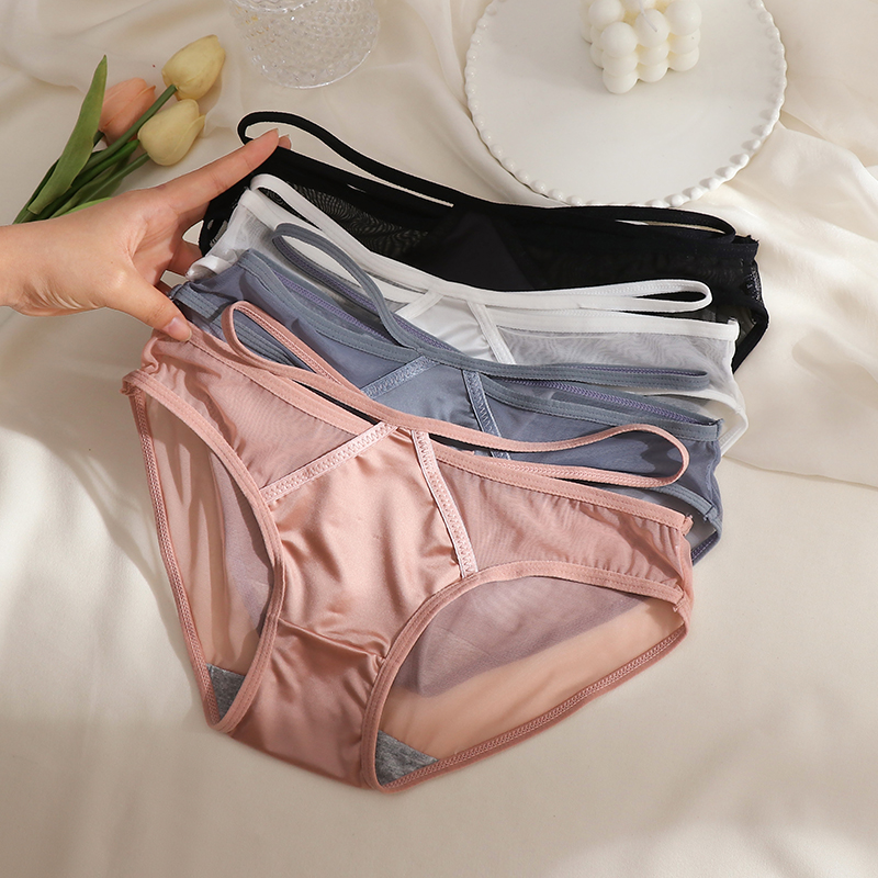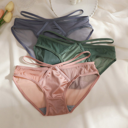缎面蕾丝内裤女款纯棉裆透气低腰超薄火辣透明女士性感网纱三角裤