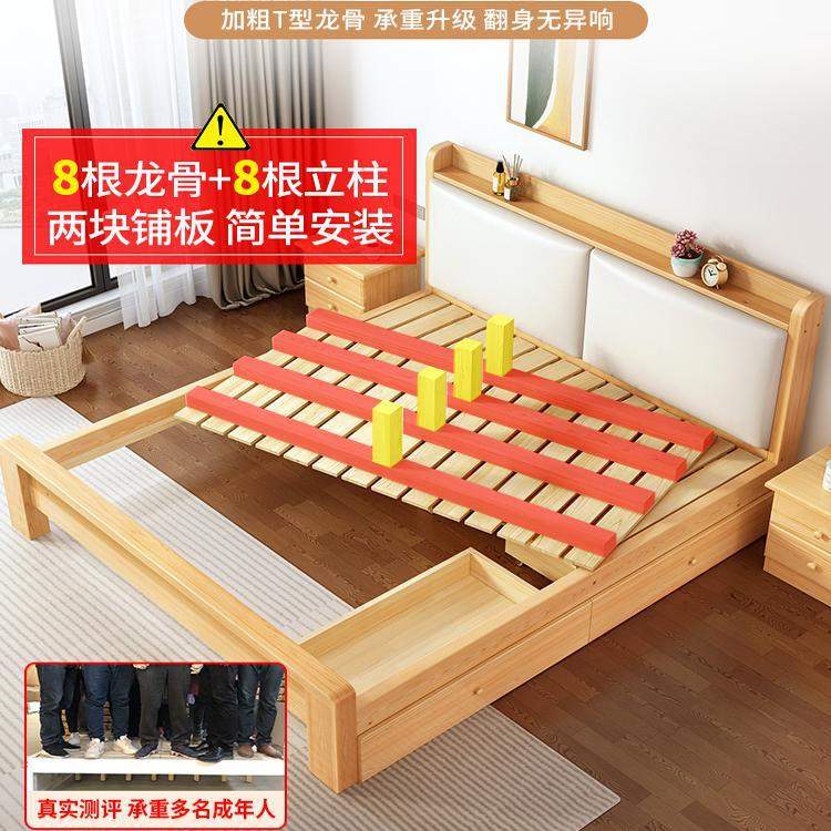 J^实木床1.5米全实木双人床主卧现代简约出租房床欧式1.2米单人