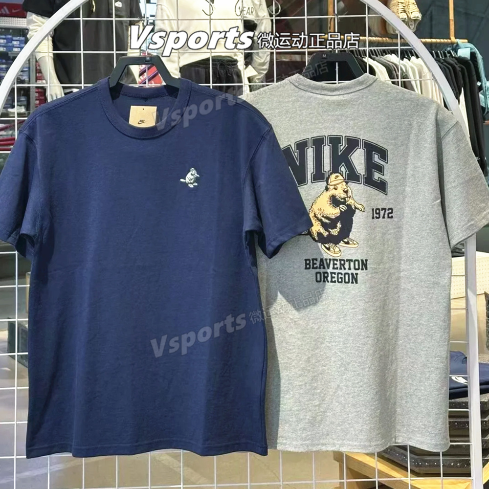 正品耐克短袖男2025新款圆领运动背后图案土拨鼠T恤II7231 IH0818