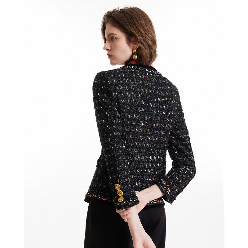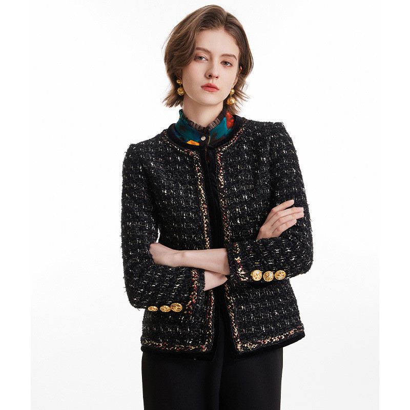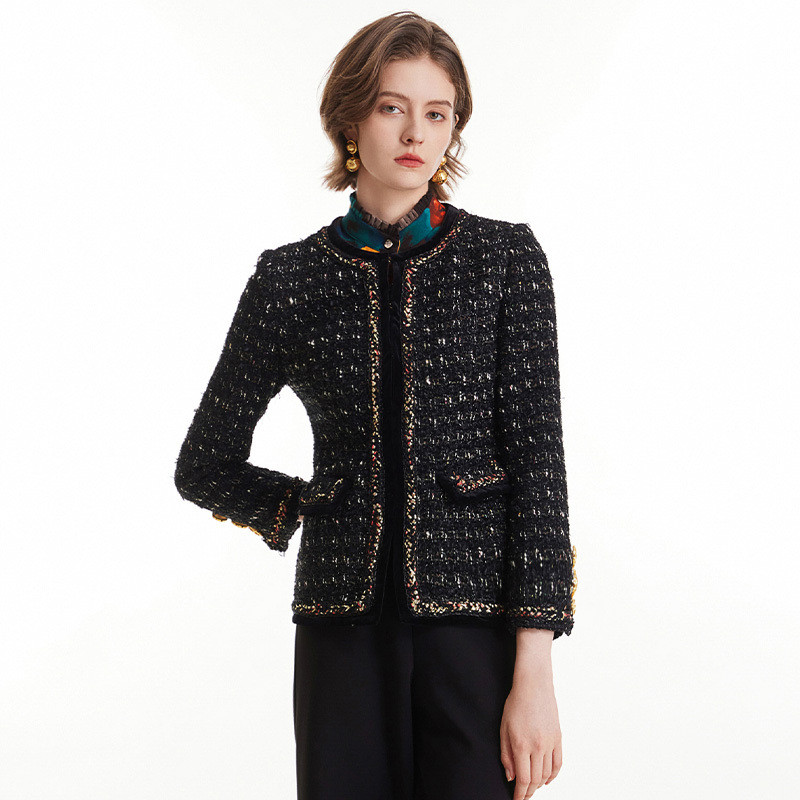 MORELINE沐兰2025年春季新款小翻领设计感粗花呢小香风外套中长款