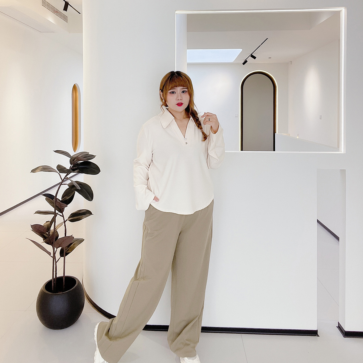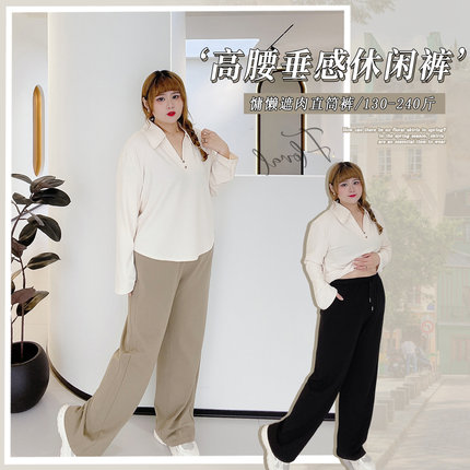 胖仙女莹莹大码女装胖mm秋季韩版复古直筒裤子高腰显瘦休闲阔腿裤