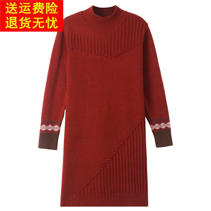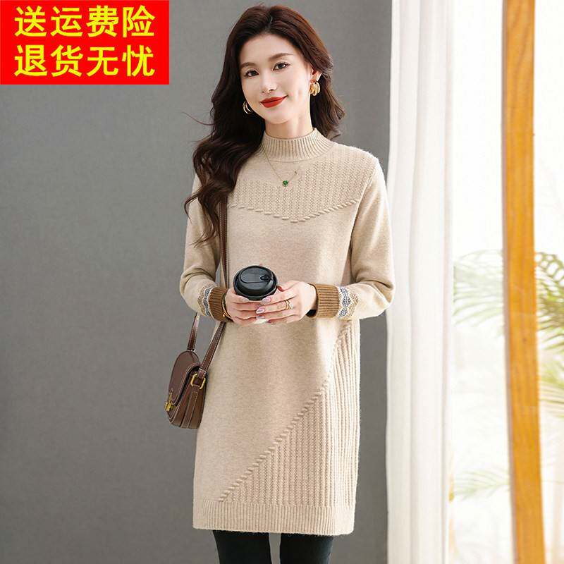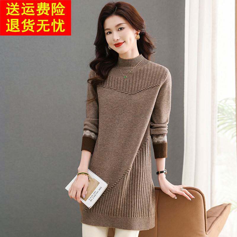 鄂尔多斯市半高领有羊毛针织女冬季宽松中长款内搭打底衫羊绒毛衣