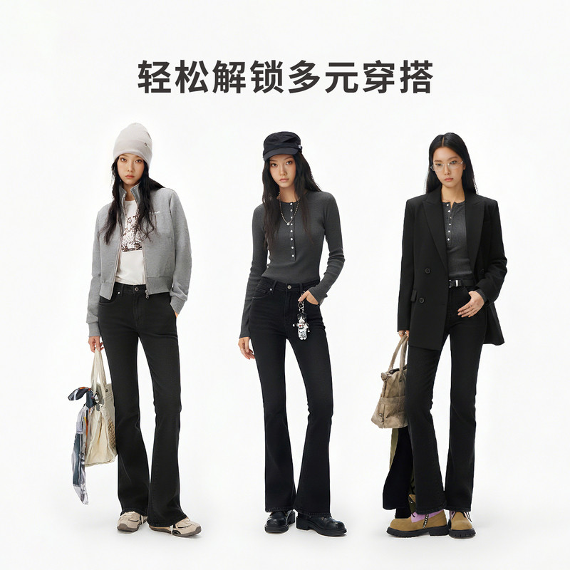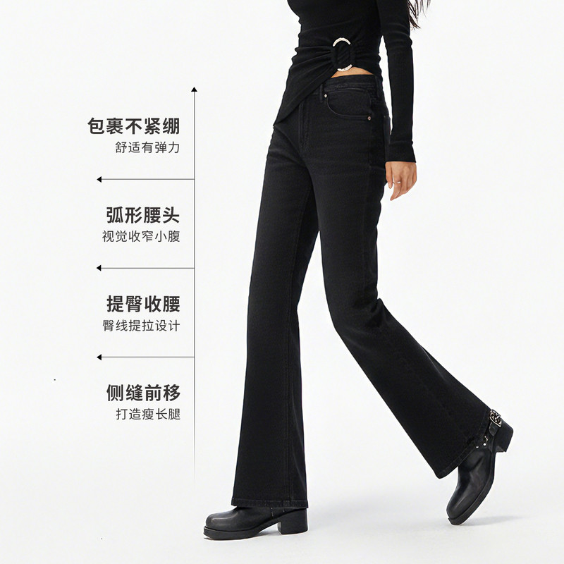 ABLE JEANS【马蹄裤】25冬女士复古摩登高腰修身微喇叭牛仔裤加绒