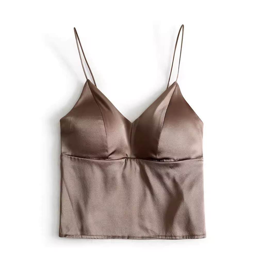吊带背心超薄款法式内衣真丝缎面桑蚕丝无钢圈光面无痕文胸夏季女