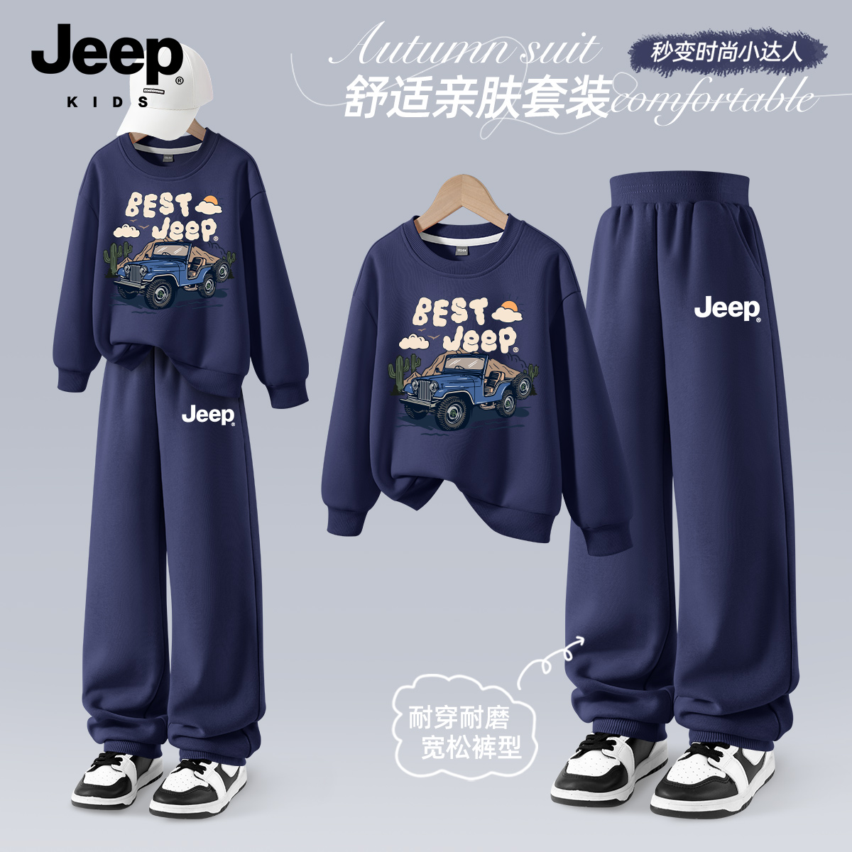 Jeep吉普童装儿童运动套装休闲洋气秋季新款男童卫衣卫裤两件套秋