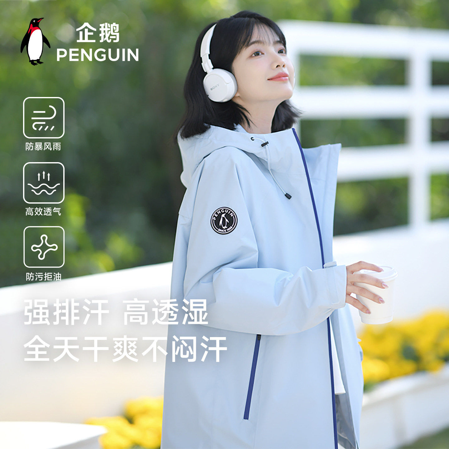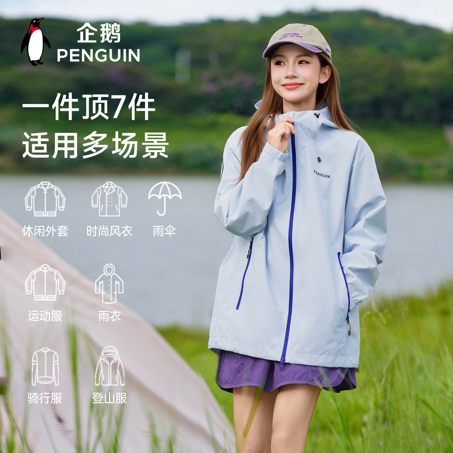 企鹅游鳞冲锋衣男女2025秋季新款户外单层夹克防风防水登山服外套