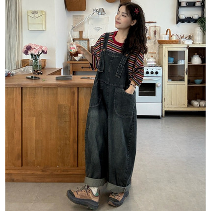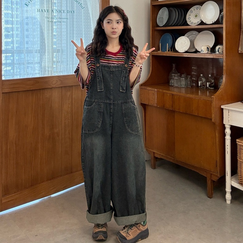 大码女装2025夏新款胖mm韩版彩虹条纹T恤+俏皮休闲牛仔背带裤套装