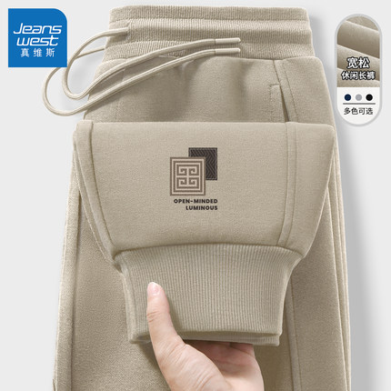 真维斯卡其色加绒裤子男裤2026新款束脚卫裤男款休闲运动裤男士Z