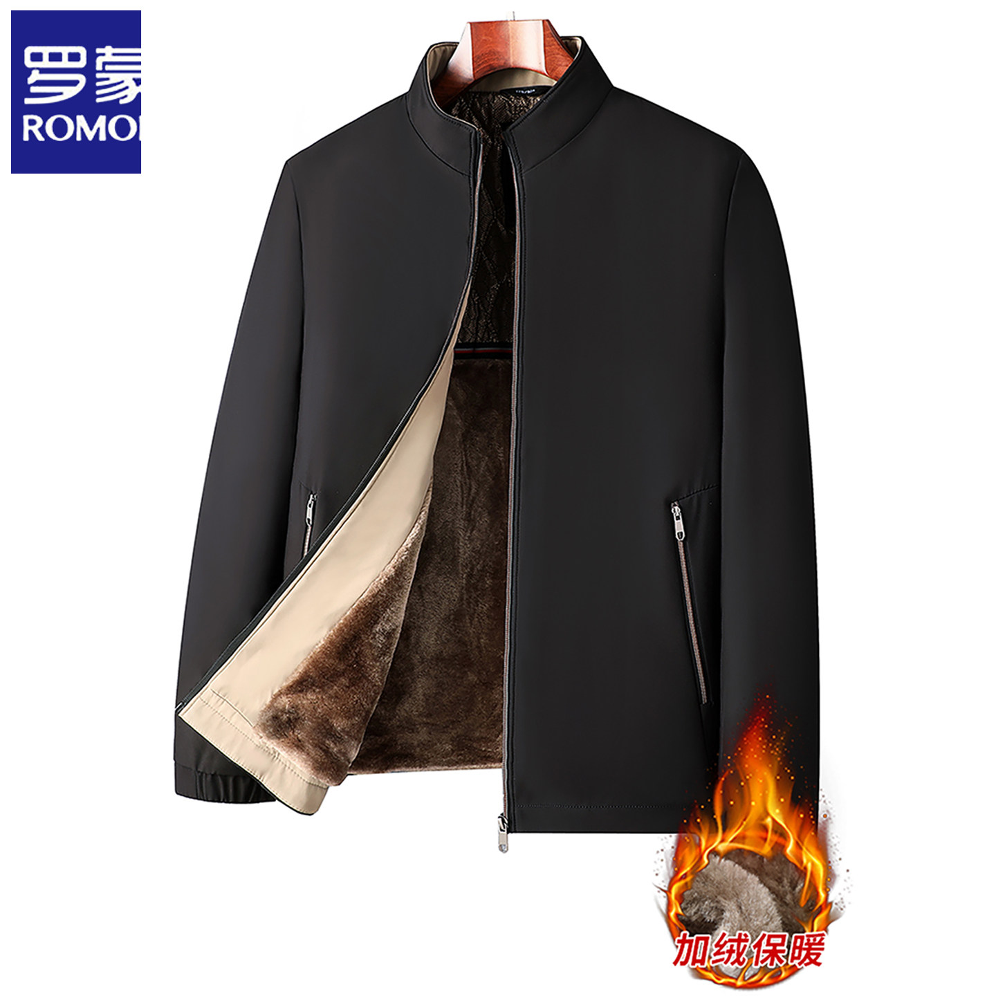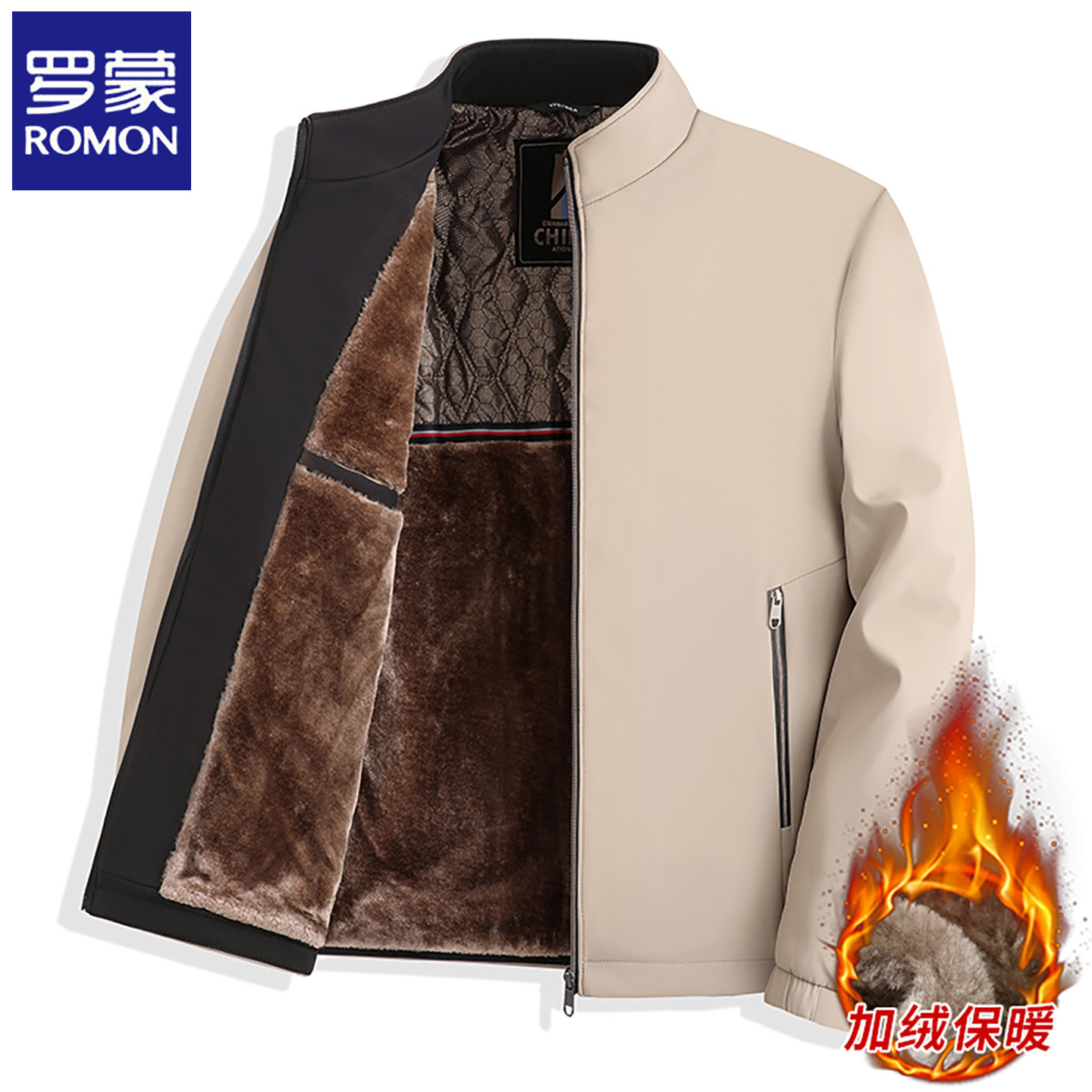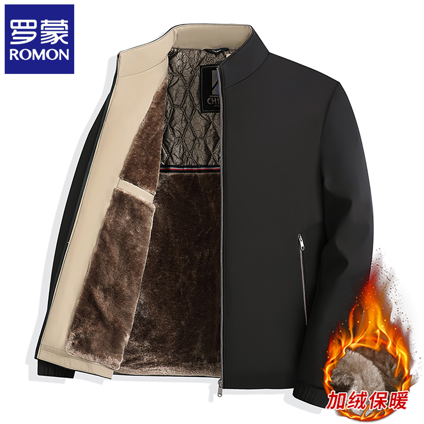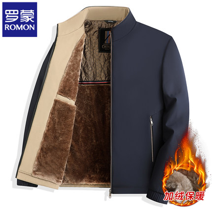罗蒙冬季新款男士夹克外套加绒加厚保暖中老年爸爸装棉衣休闲棉服