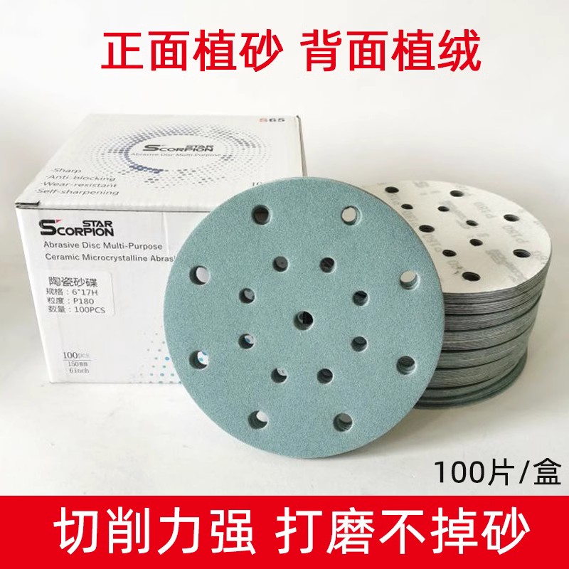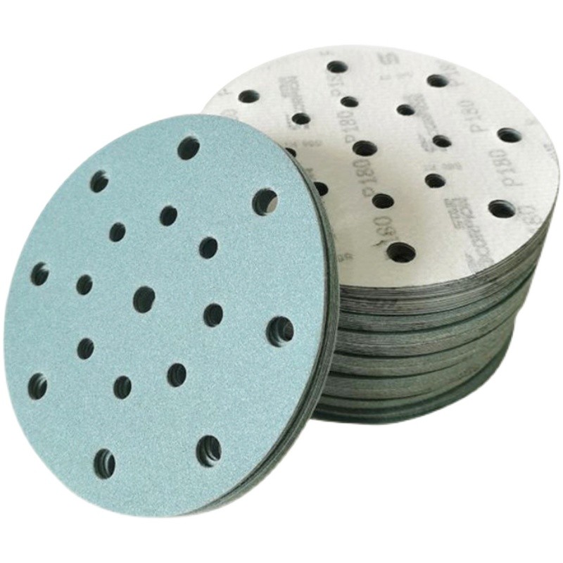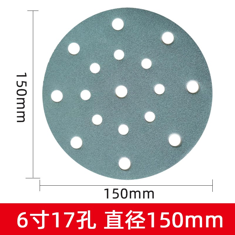 6寸17孔干磨砂纸石榴石蓝砂背绒圆盘自粘沙子批土金属打磨抛光砂