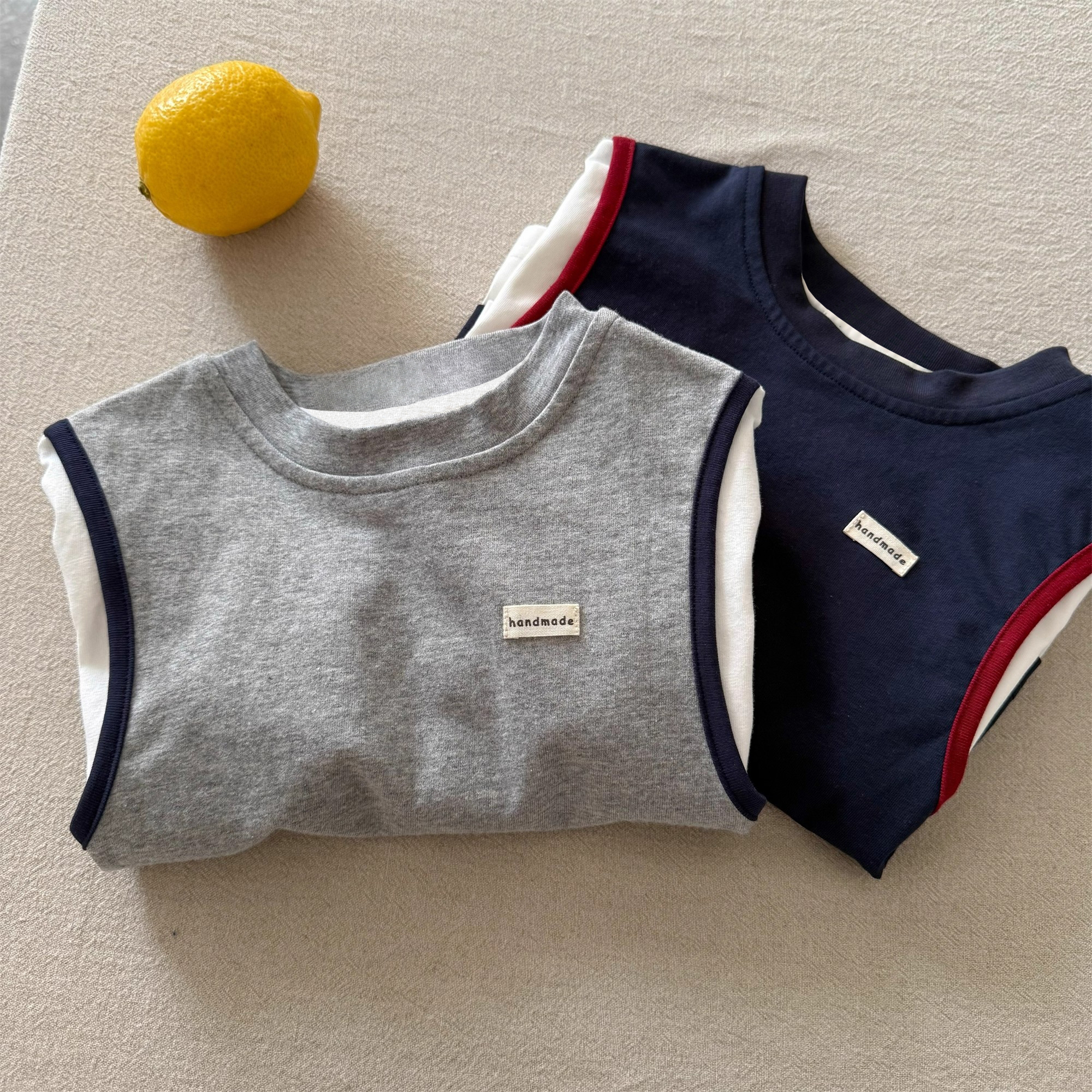 100%纯棉儿童假两件长袖t恤秋季韩系童装男童女童打底衫撞色上衣