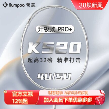 薰风K520pro羽毛球拍全碳素超轻4U5U熏风琉璃星云银刃单双拍正品