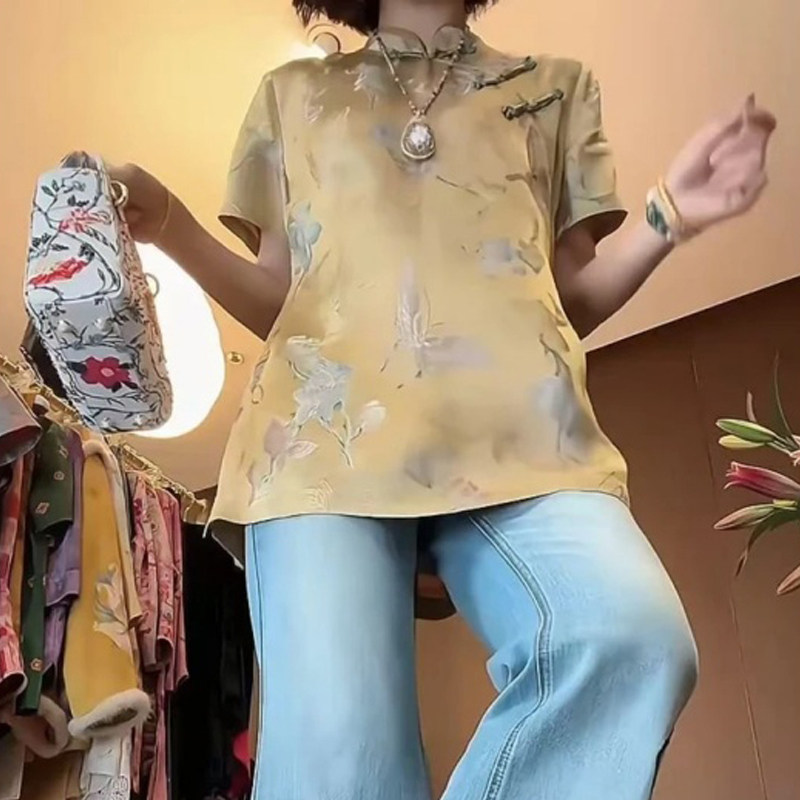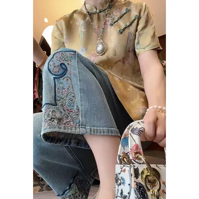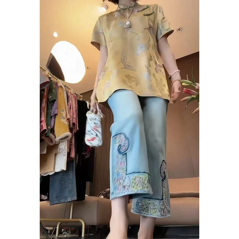 新中式国风女装2025夏季新款绝美高级禅意盘扣上衣牛仔裤两件套装