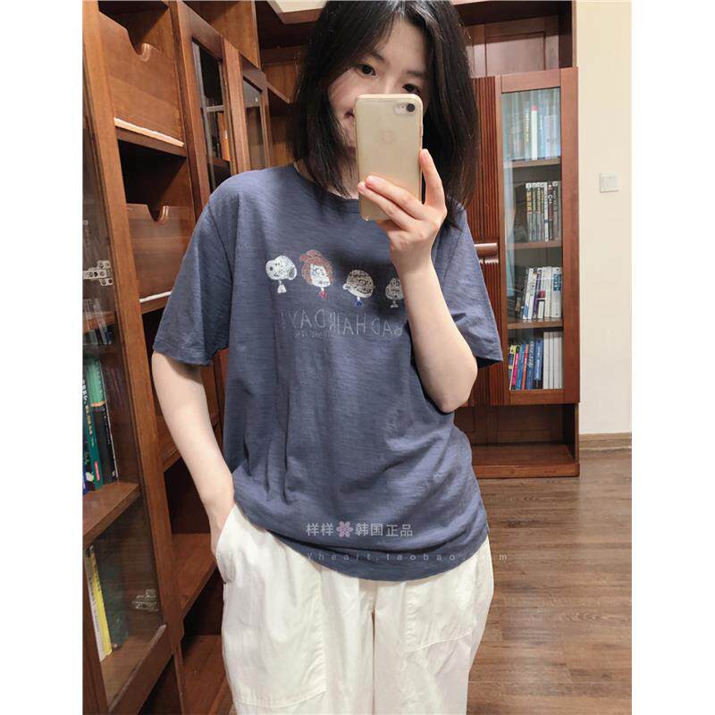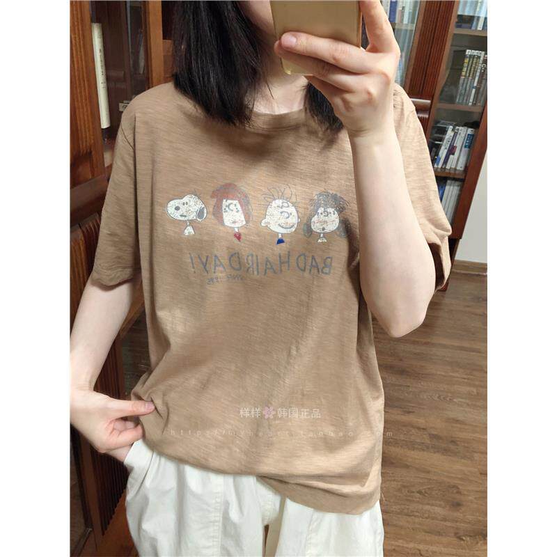 样样韩国东大门 可爱史努比卡通做旧印花竹节棉T恤45177