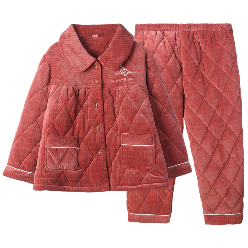 冬季珊瑚绒夹棉三层保暖女士睡衣