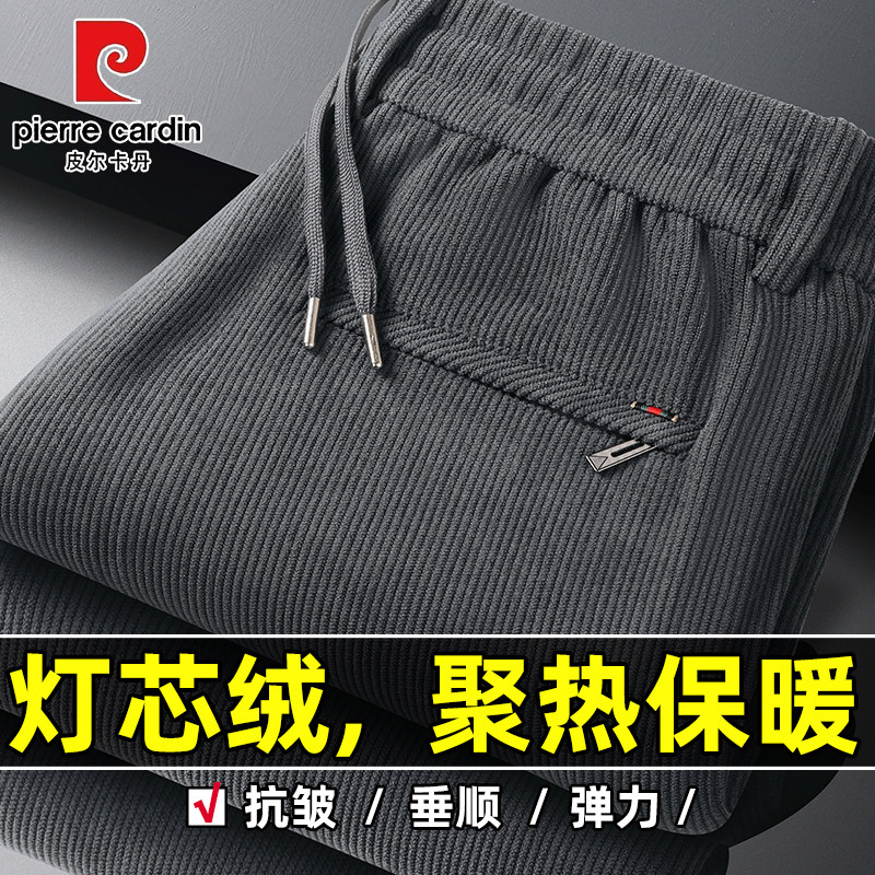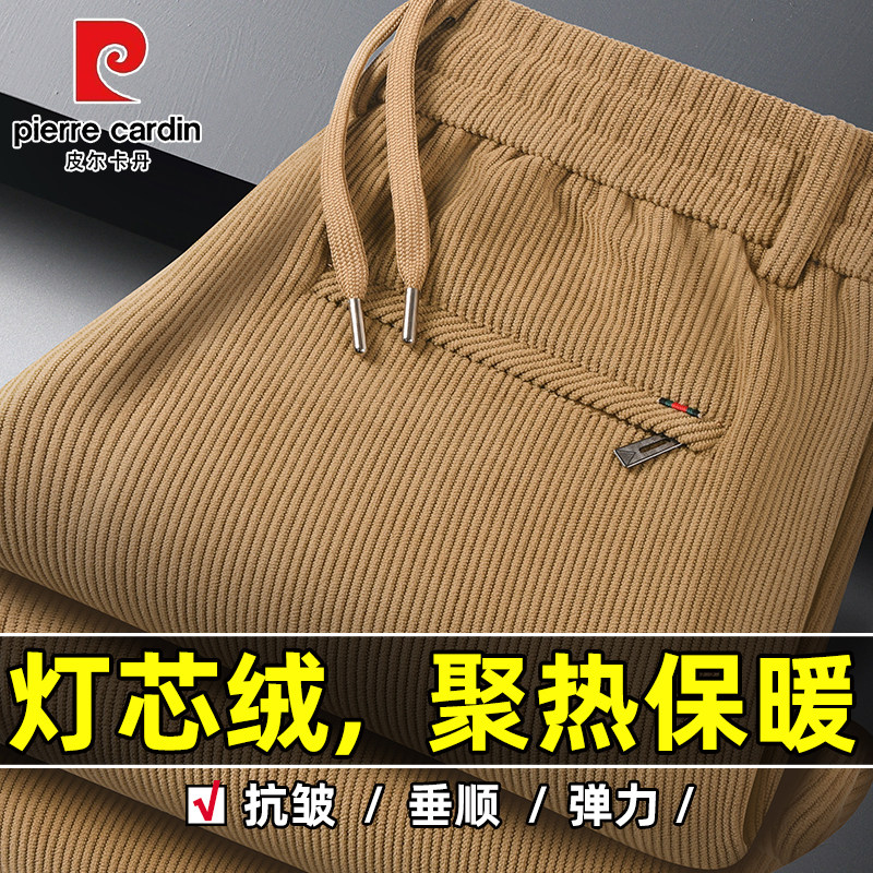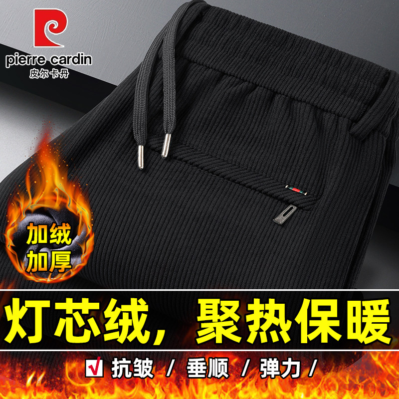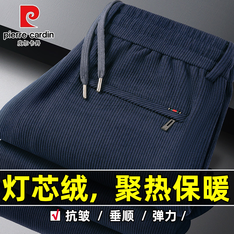 皮尔卡丹冬季男灯芯绒裤宽松直筒运动裤加绒加厚爸爸装条绒休闲裤