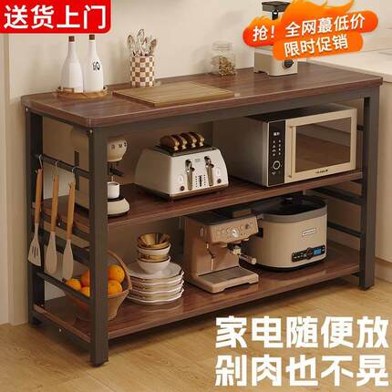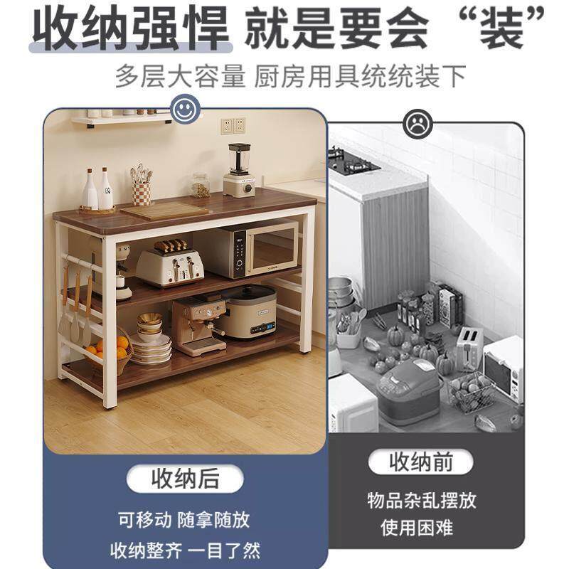 厨房多功能置物架落地多层微波炉储物窄边柜工作台切菜桌子收纳层