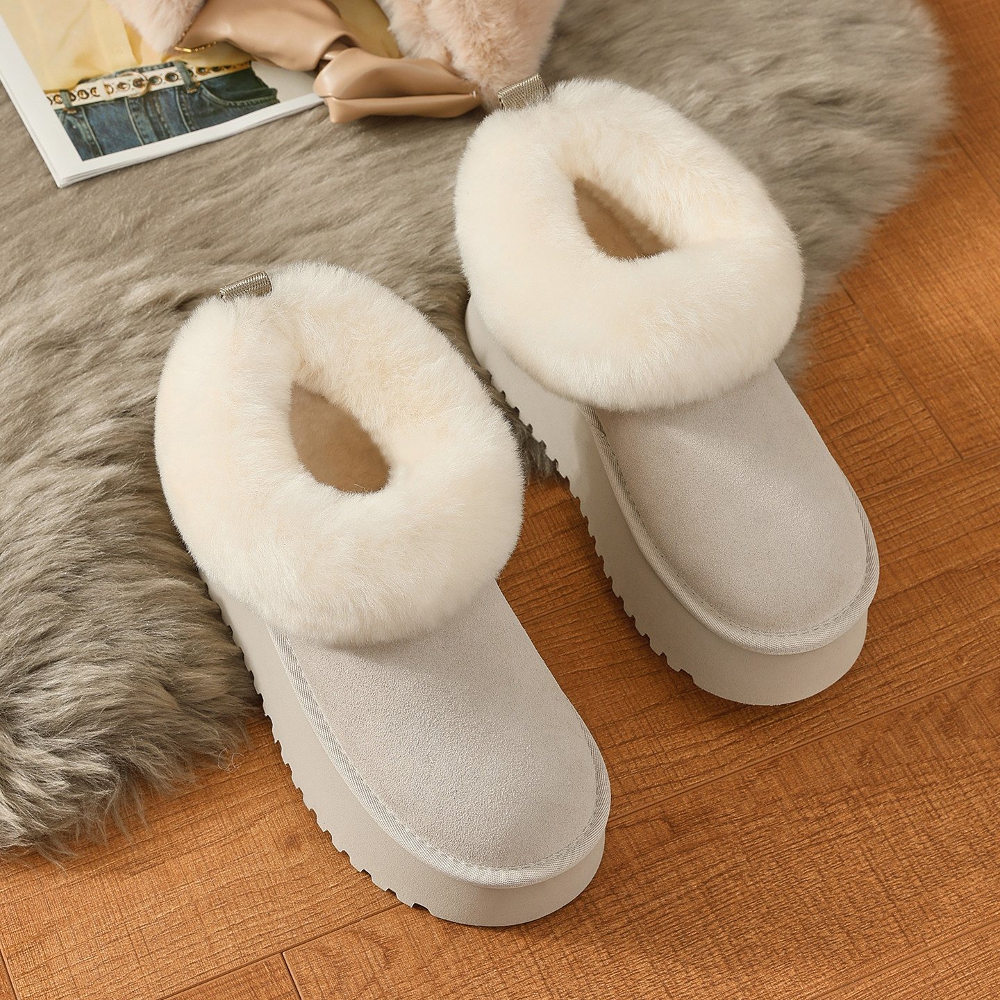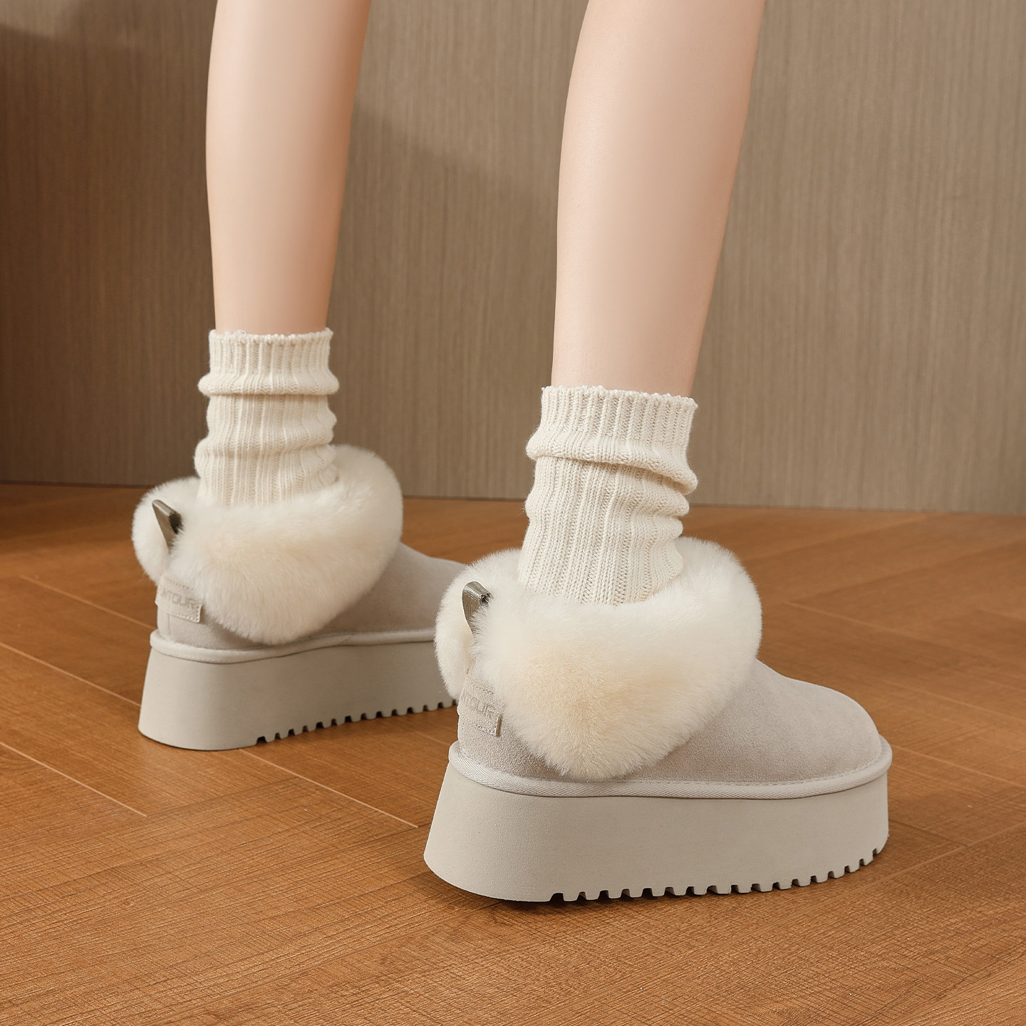 10cm内增高雪地靴女2025新款冬季加绒短靴毛毛棉鞋厚底小个子女鞋