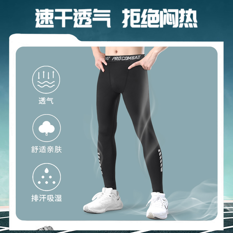 跑步长裤紧身裤男可放手机速干裤子高弹健身运动套装篮球压缩训练