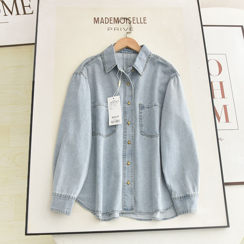 伊系の复古简约双口袋牛仔衬衫2025秋新款基础通勤休闲衬衣 女
