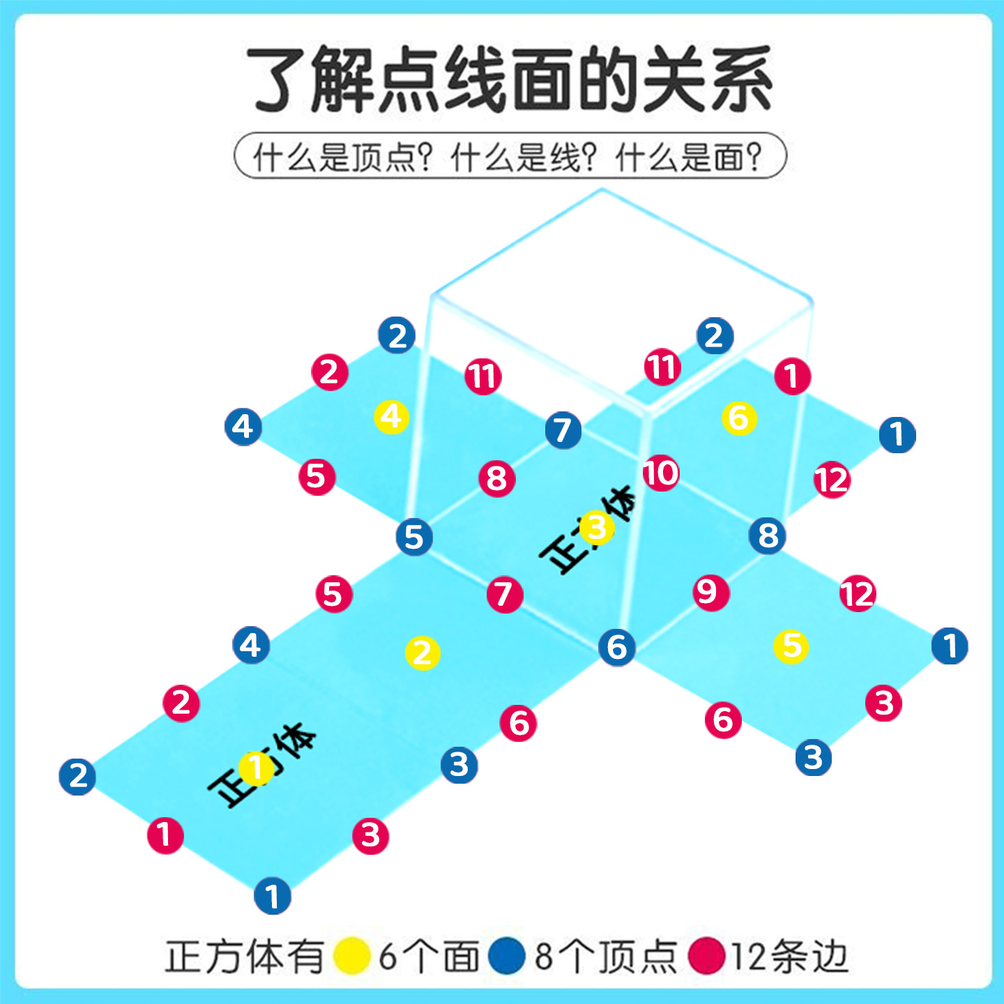 教学透明立体几何体模型小学初中数学教具磁性正方体面积展开图