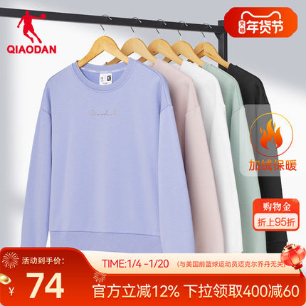 乔丹运动卫衣女冬季新款女士休闲透气透气宽松圆领加绒保暖上衣潮