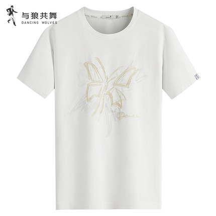 与狼共舞刺绣含桑蚕丝短袖T恤