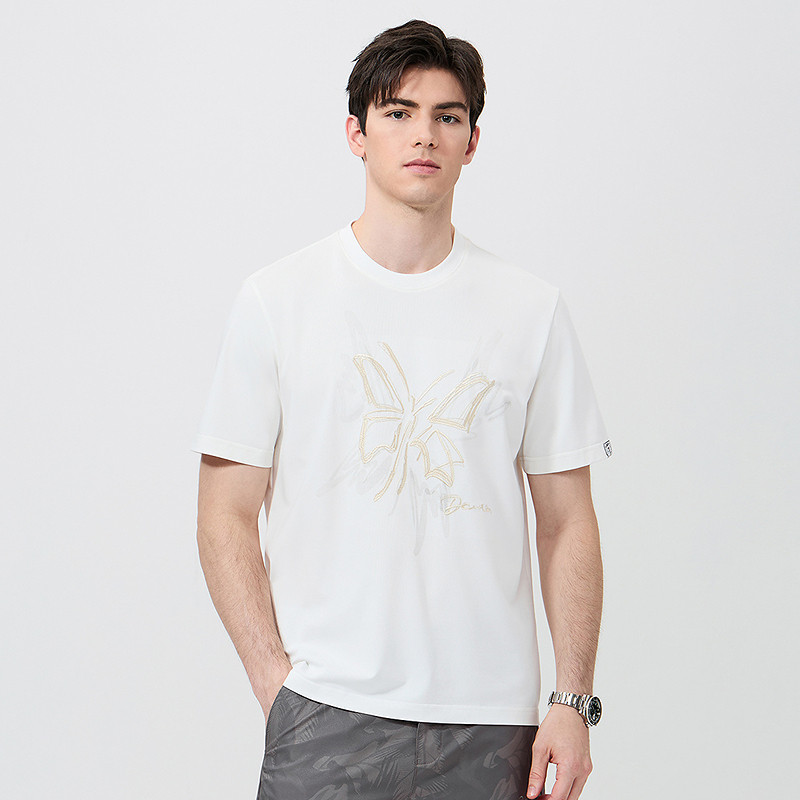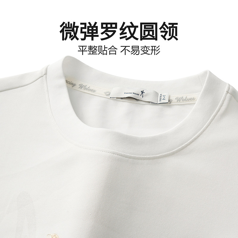 【刺绣】与狼共舞含桑蚕丝短袖T恤男2025夏季新款7A抗菌圆领上衣