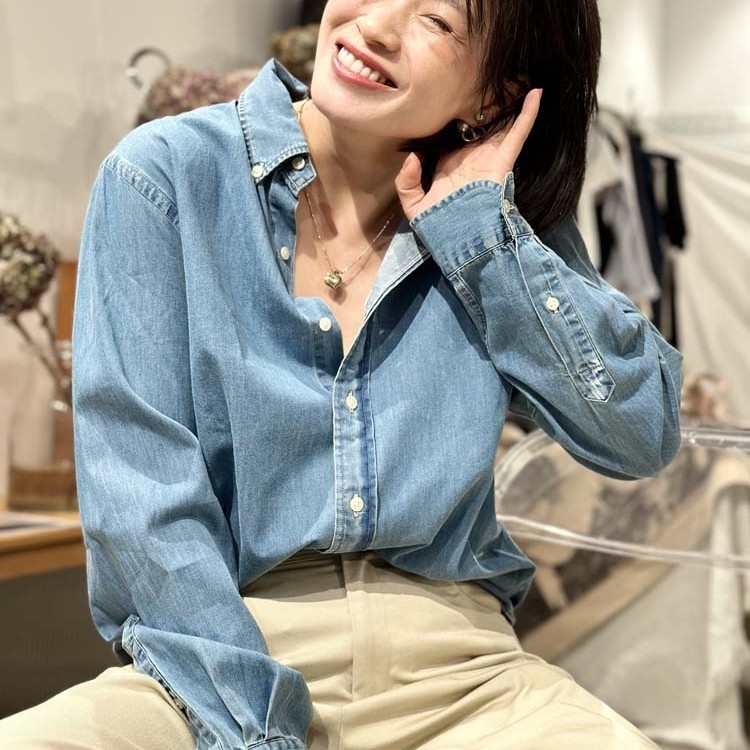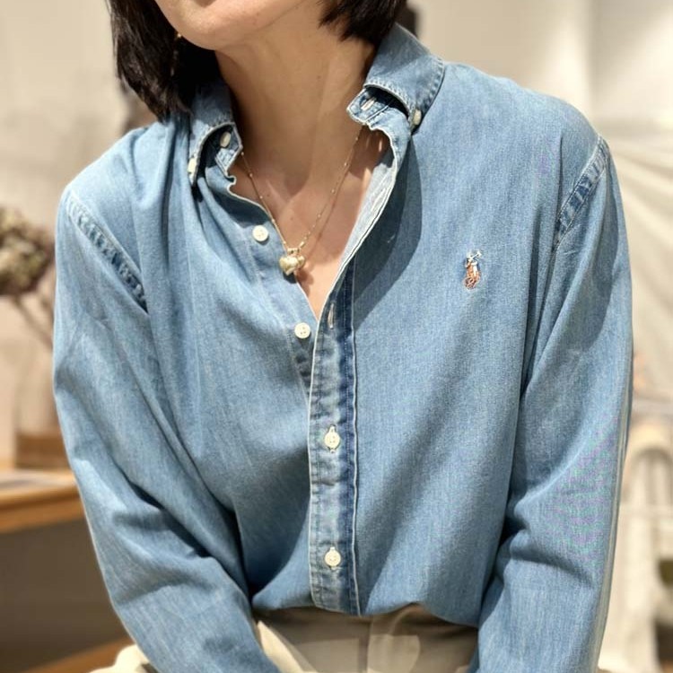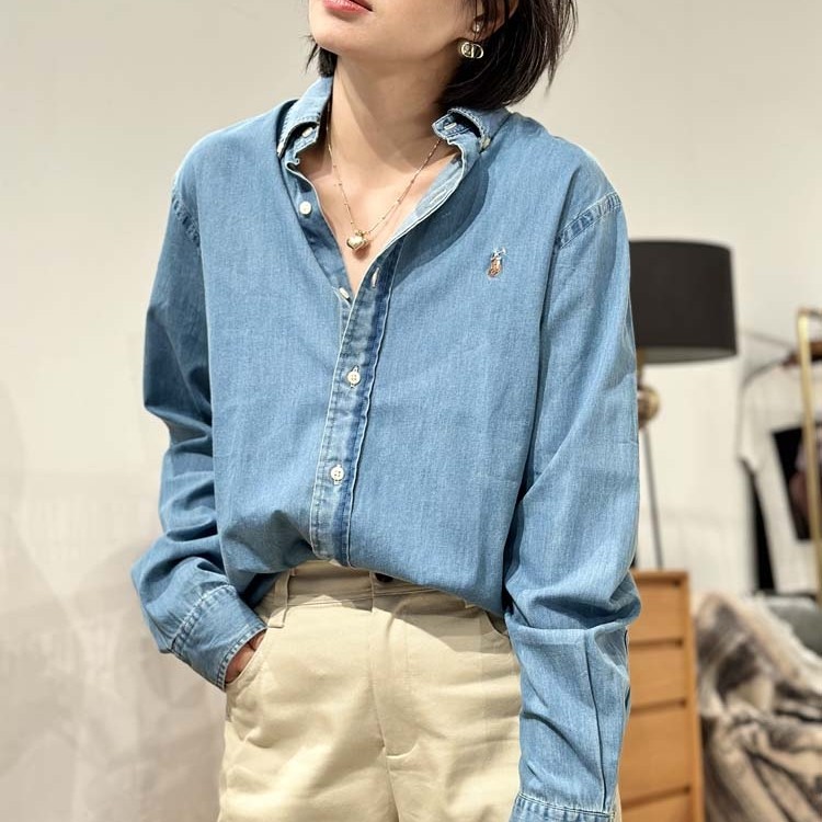 洗水颜色很美!复古美式刺绣翻领长袖百搭纯棉衬衫外套女牛仔衬衣