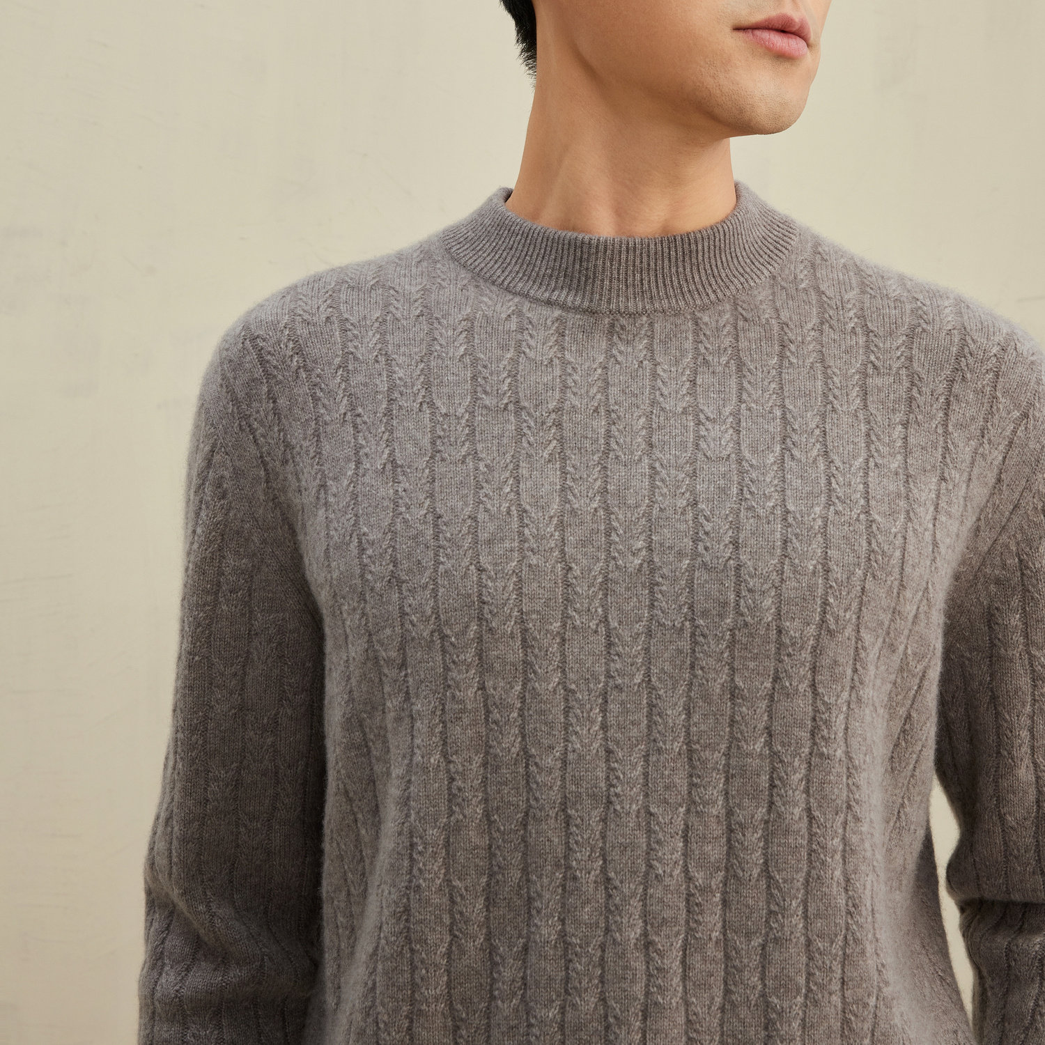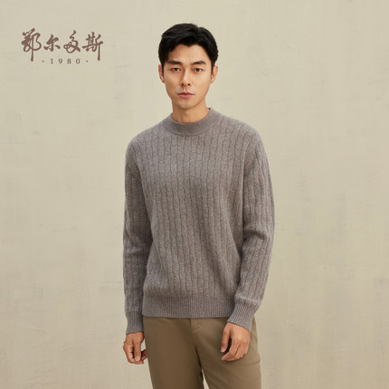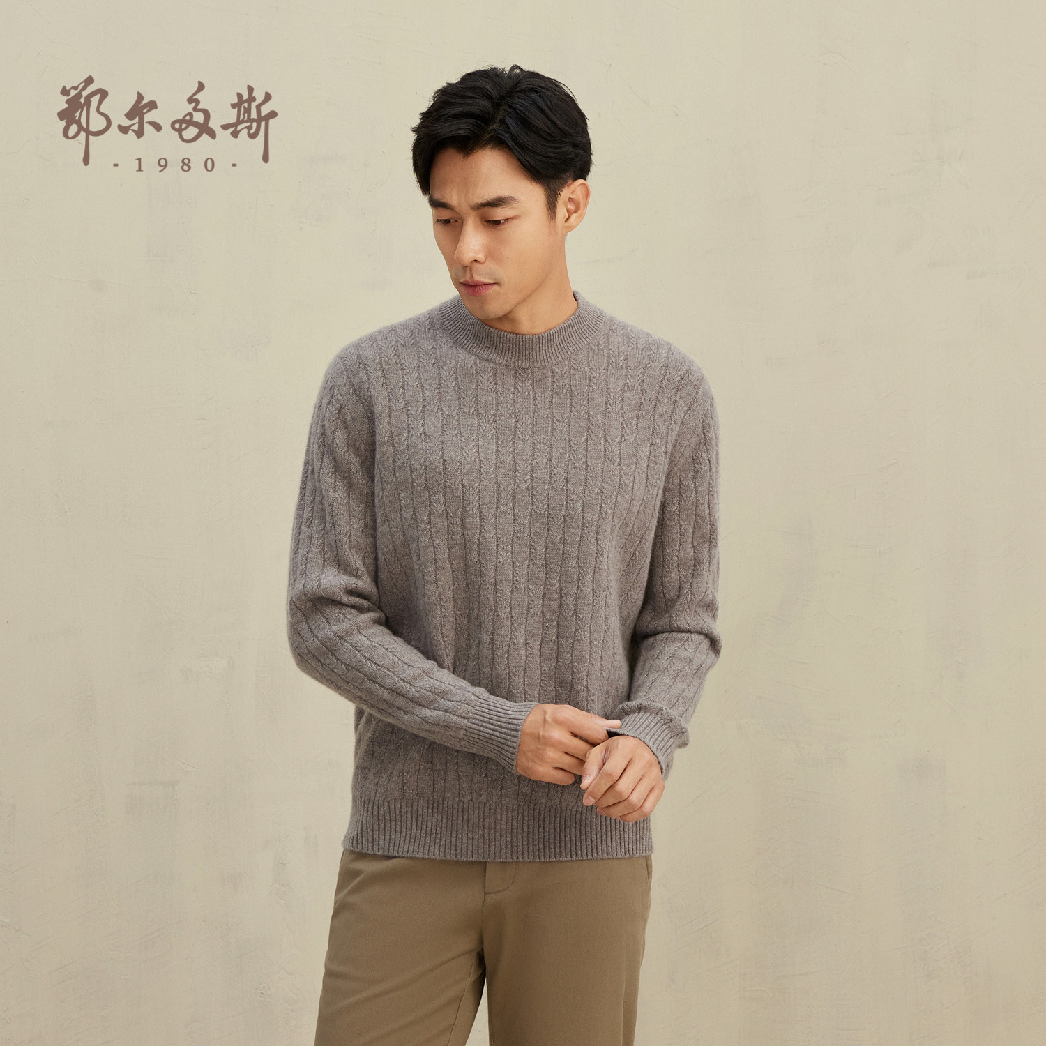 鄂尔多斯1980 半高领羊绒衫秋冬男士绞花纯色厚款针织套衫