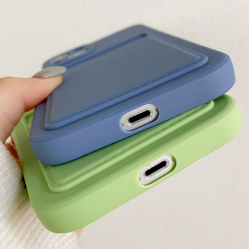 适用苹果15卡包手机壳14Plus全包iPhone 13mini 11自带装卡16 12Pro Max保护套XS XR 7 8 6SPlus SE3软手机套