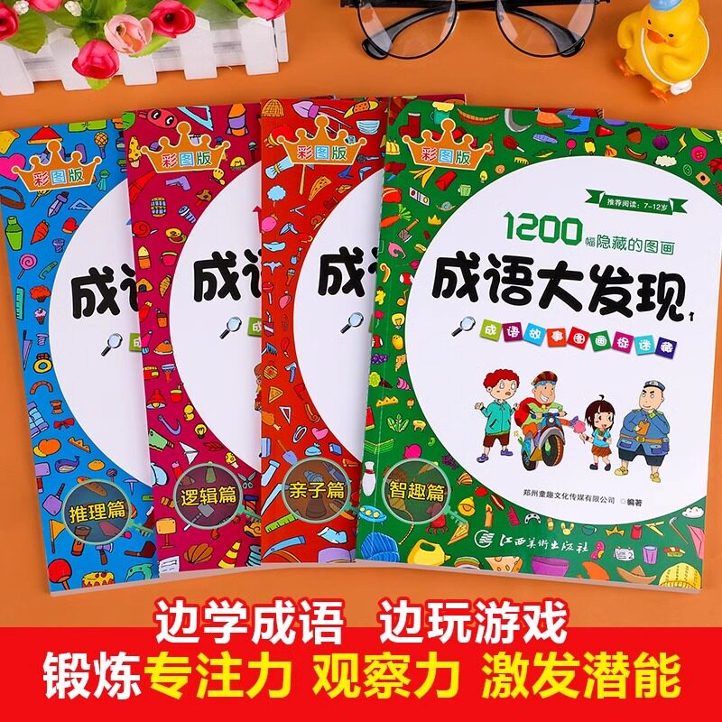 成语大发现图画捉迷藏全套4册彩图版隐藏的图画幼儿园小学生高难度幼儿童找东西的图画书加厚7-9-10-12岁以上找不同专注力训练书籍