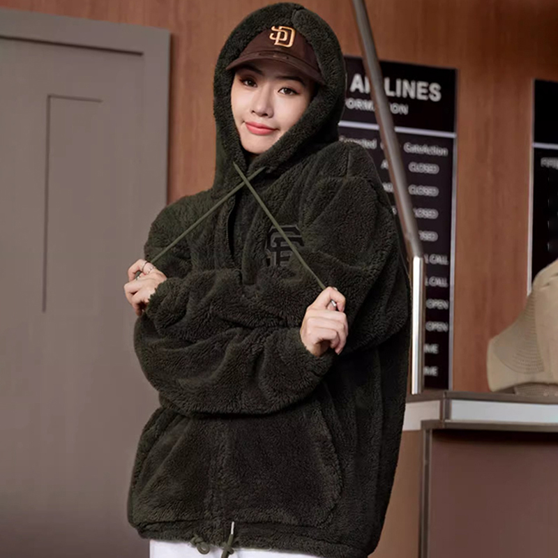 NewEra纽亦华MLB外套男女NY刺绣仿羊羔绒连帽运动夹克13338647