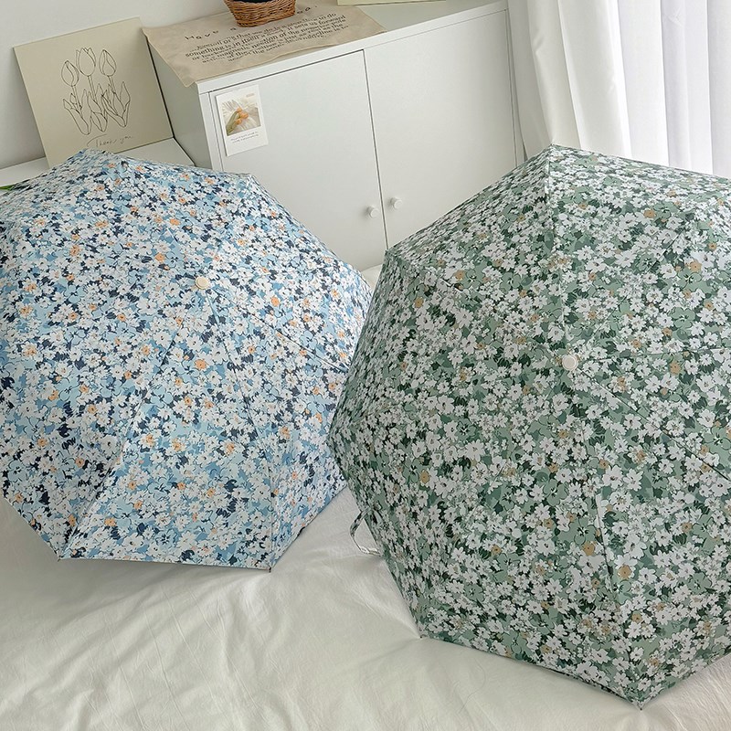 小清新碎花雨伞女折叠森r系遮阳伞晴雨两用黑胶防晒紫外线太阳伞