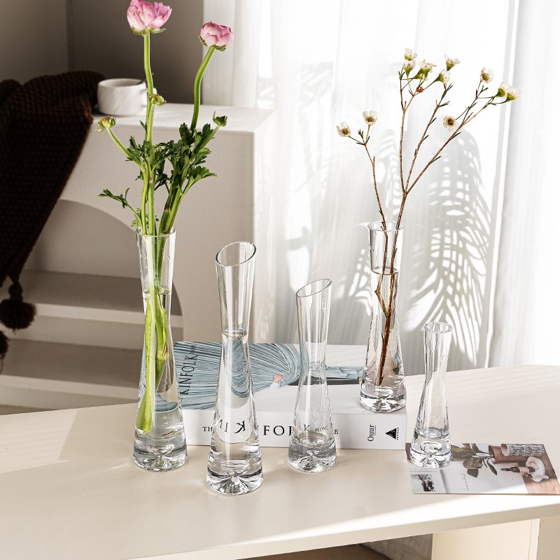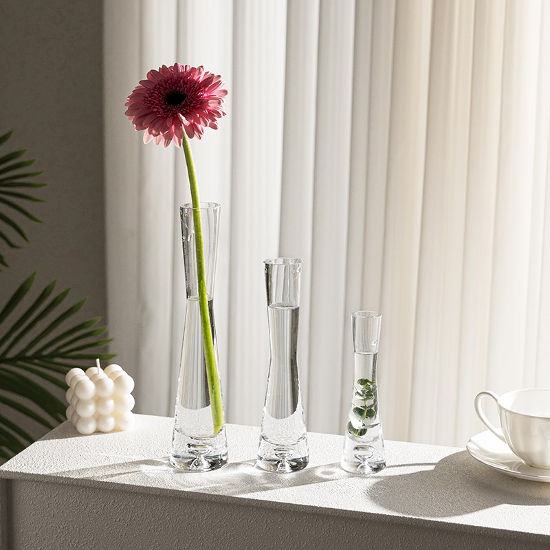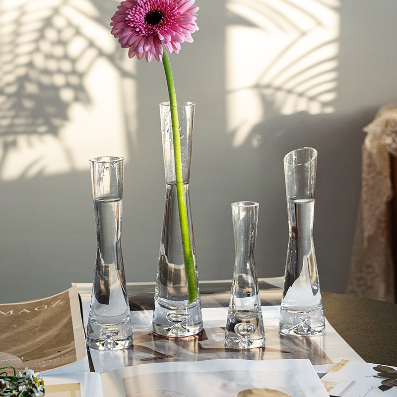 创意一枝花花瓶玻璃高级感法式小口径客厅插花水培花器桌面小摆件