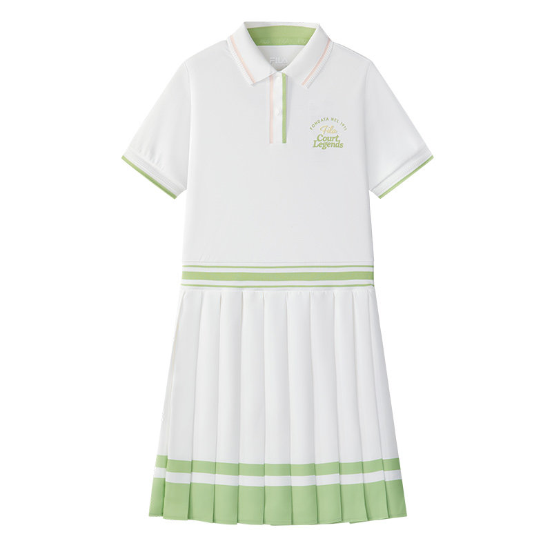 FILA斐乐儿童童装连衣裙2025年秋季新款女中大童运动针织百褶长裙