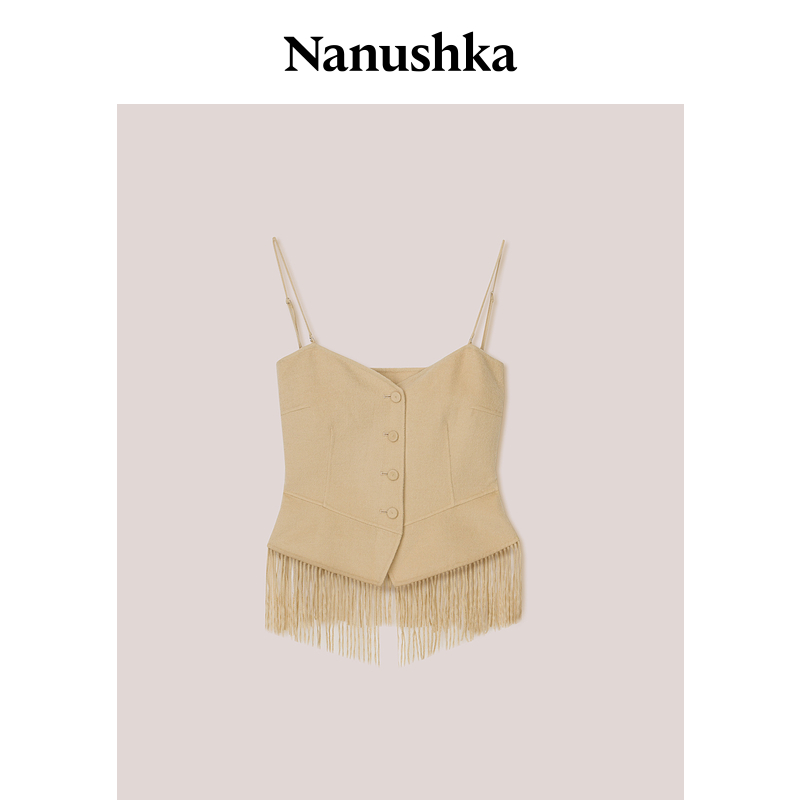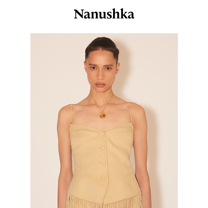 【甄选折扣】NANUSHKA 女士 BAFARO 淡人系奶油色细肩带羊毛吊带