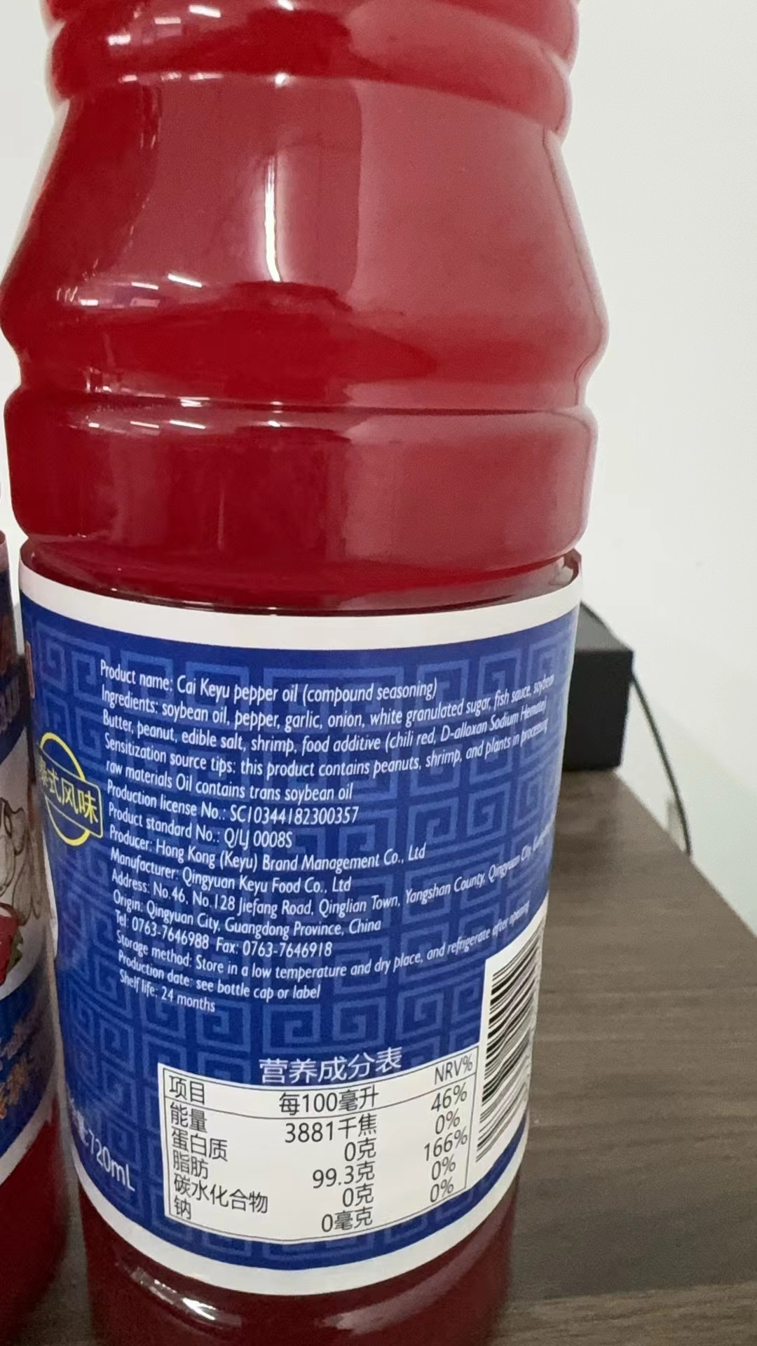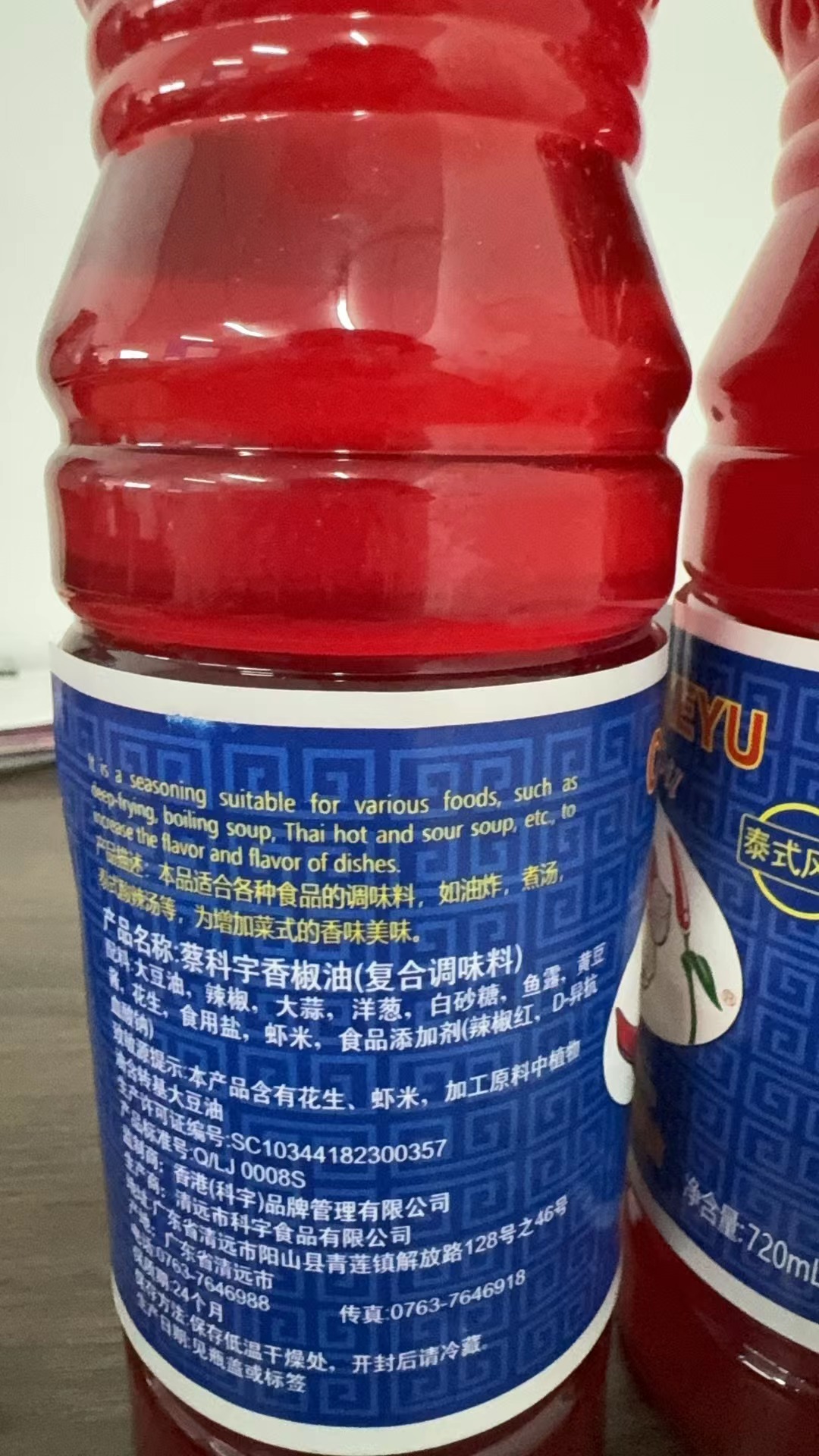 蔡科宇顶上香椒油 720ml装 泰式 辣椒红油 冬阴功汤增色