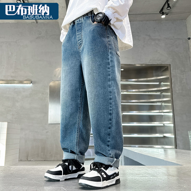 男童裤子秋装2025新款儿童牛仔裤大童直筒裤男孩长裤春秋宽松童装