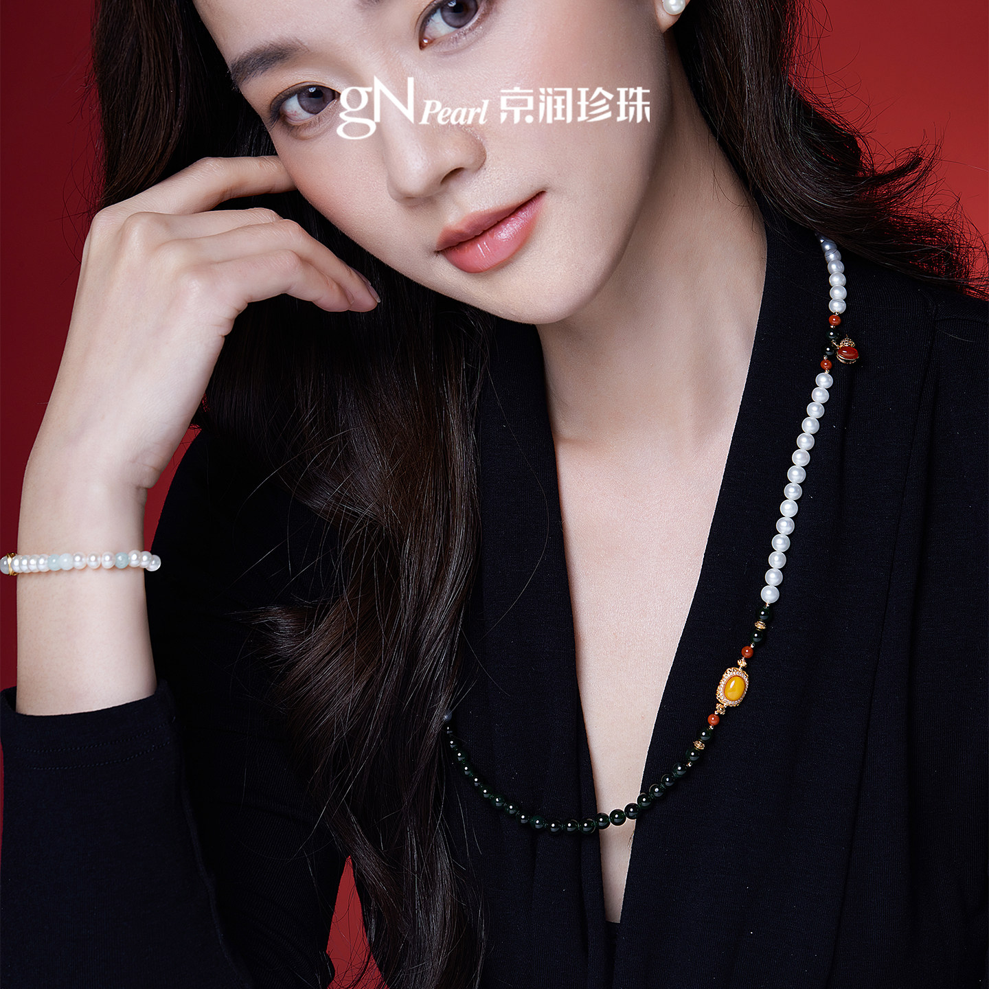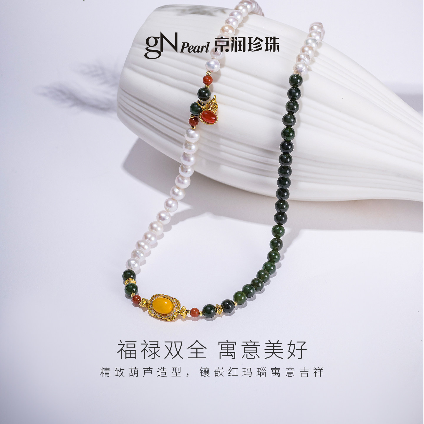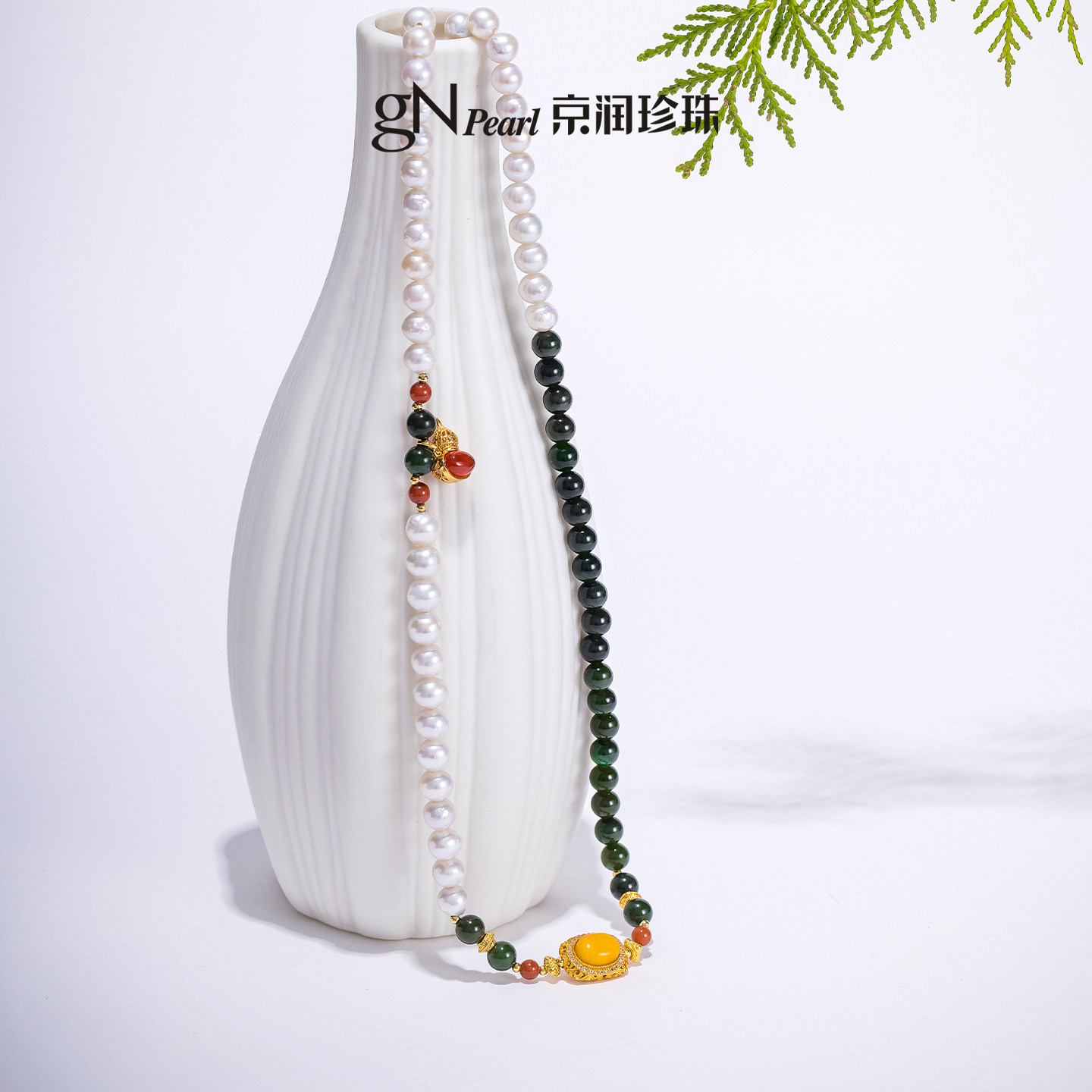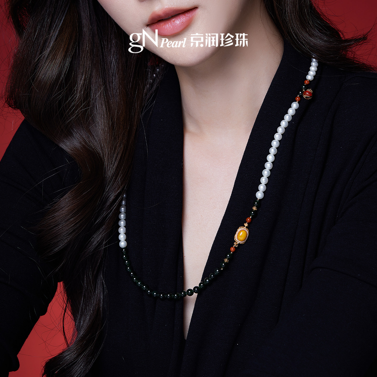 京润珍珠锦缘淡水珍珠国风毛衣链5.3-6.3mm近圆形民族风长项链女D
