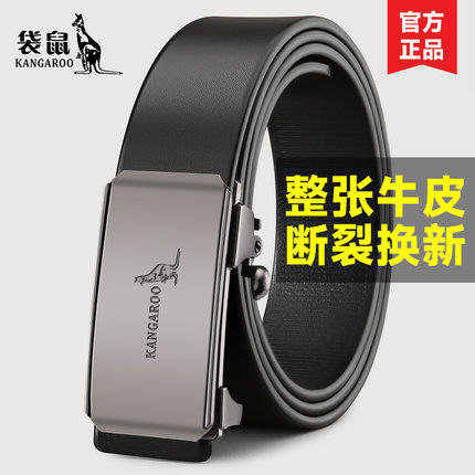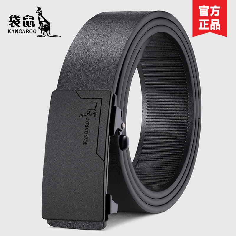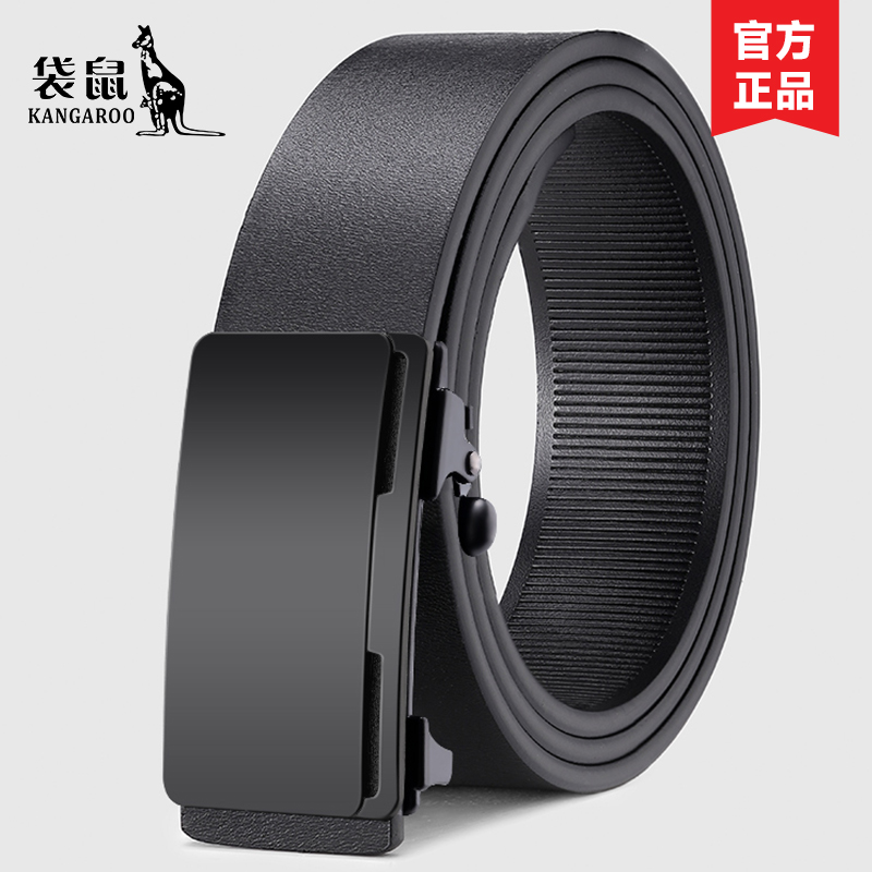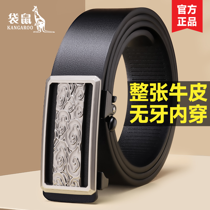 袋鼠男士无牙内穿真皮商务皮带