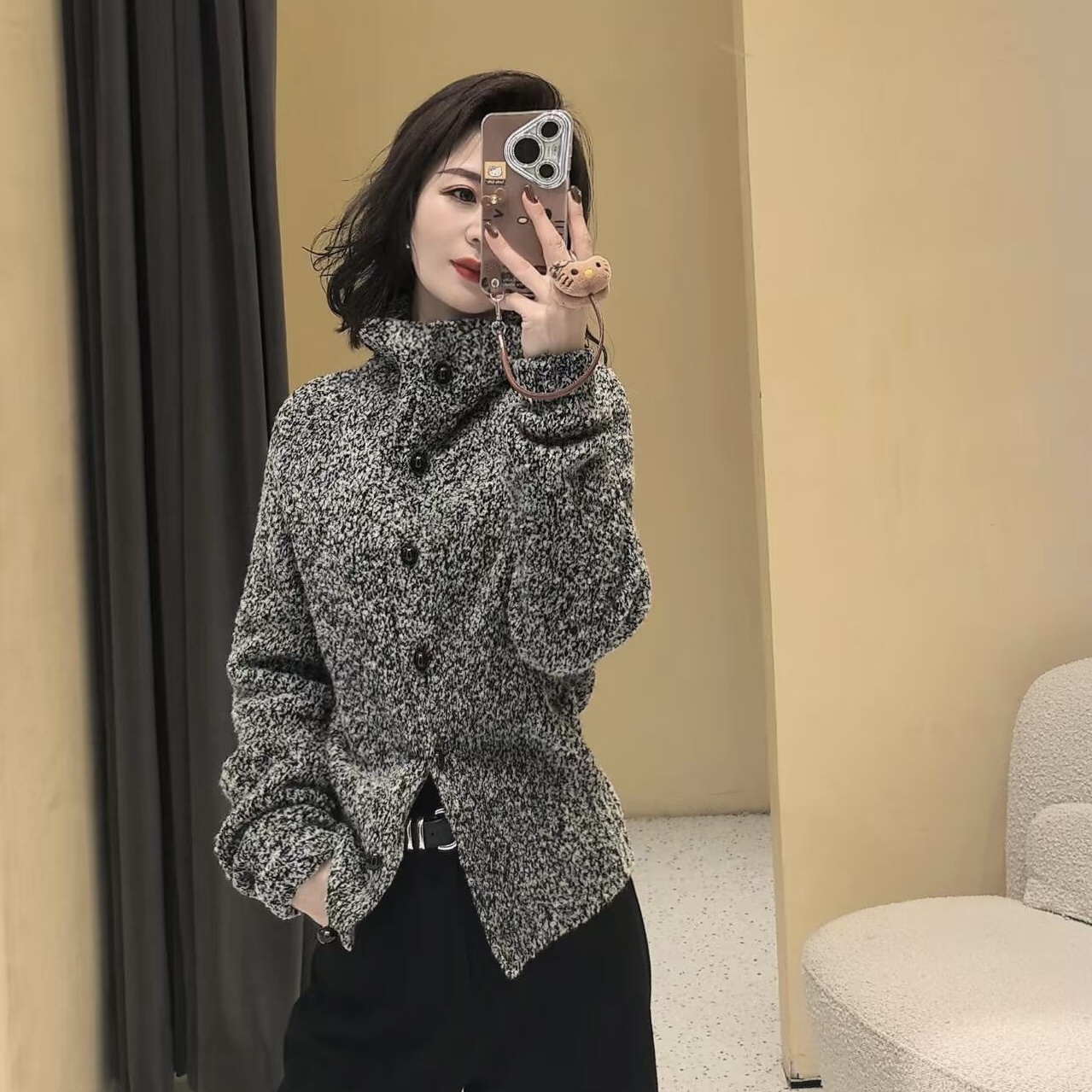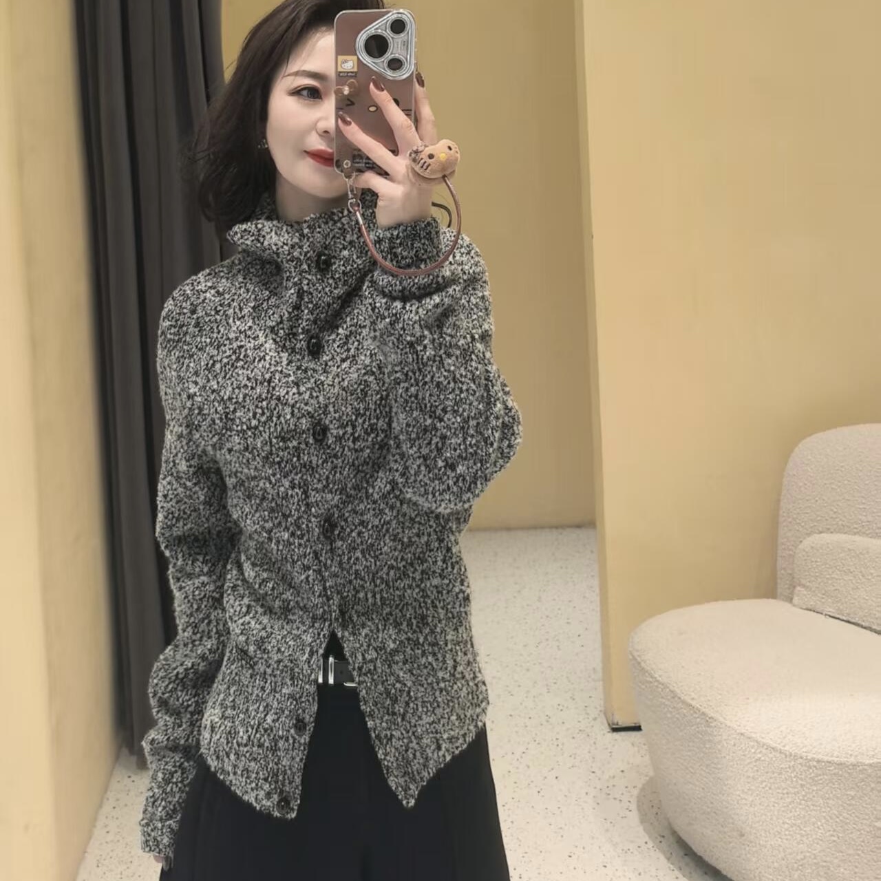 ariosee艾诺丝槿官方旗舰店2025秋新绵羊毛翻领针织开衫AR804148