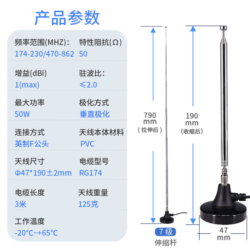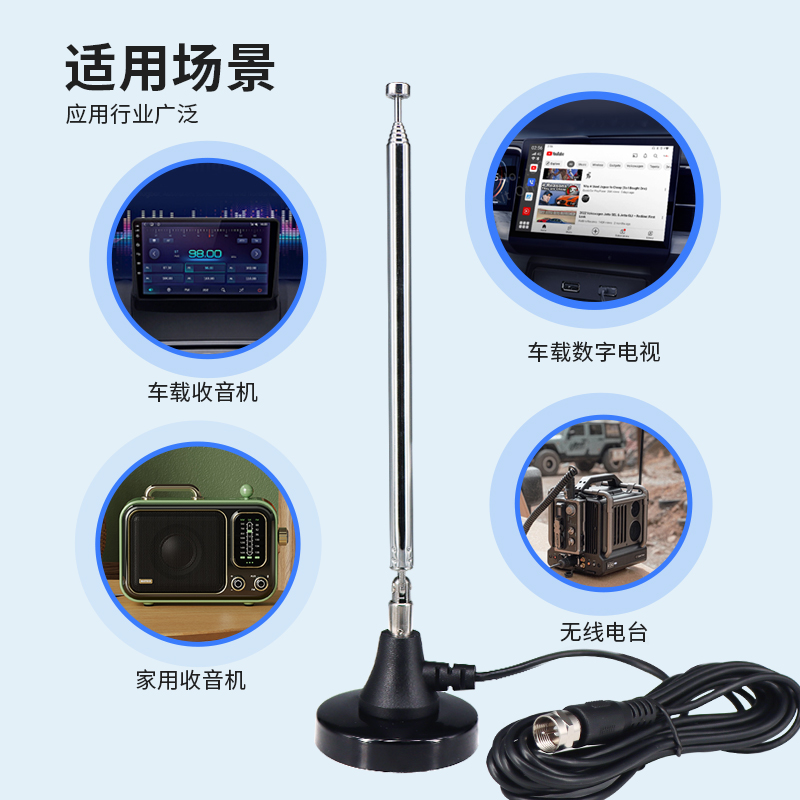 MW中短波收音机FM调频天线山进德生车载音响功放伸缩拉杆增强天线