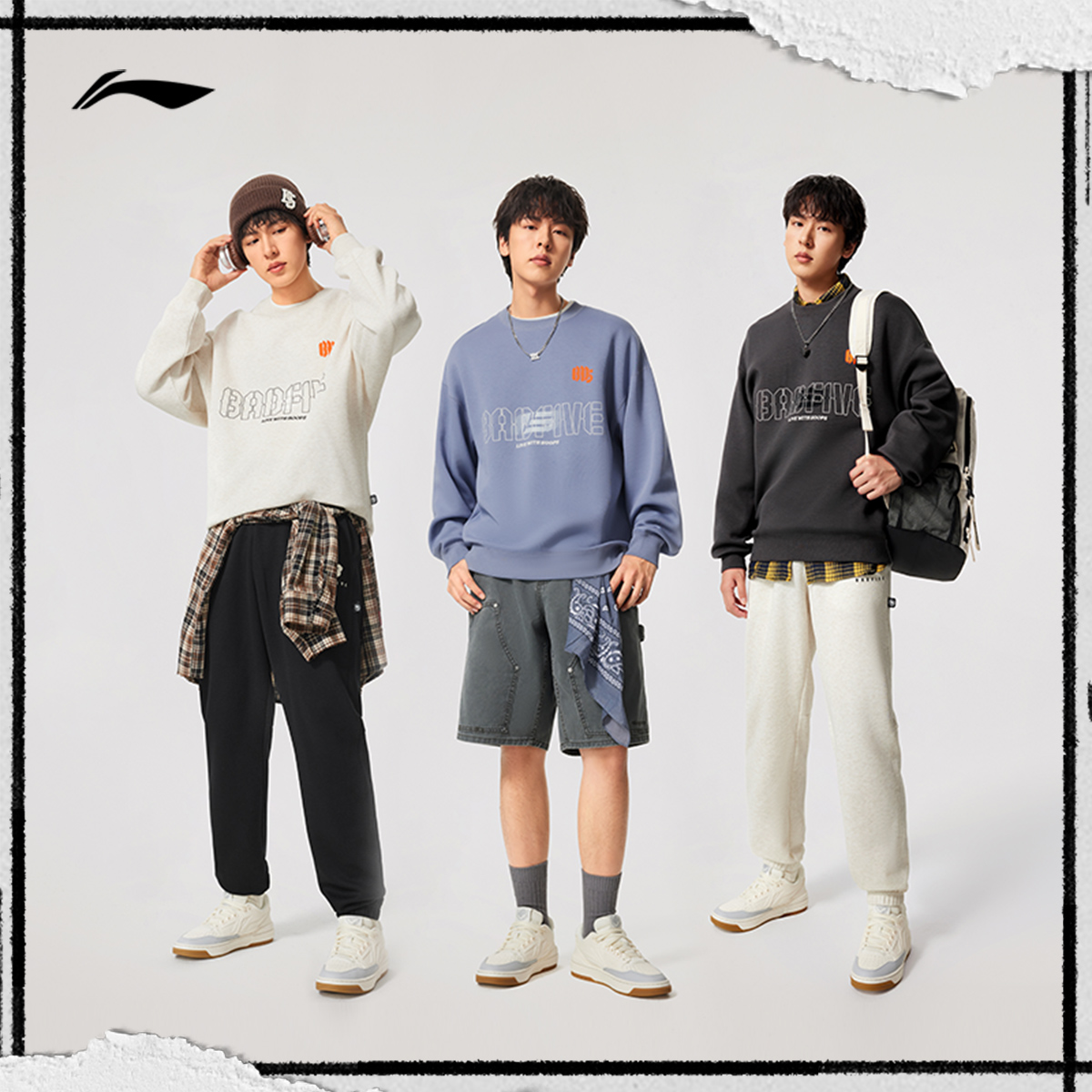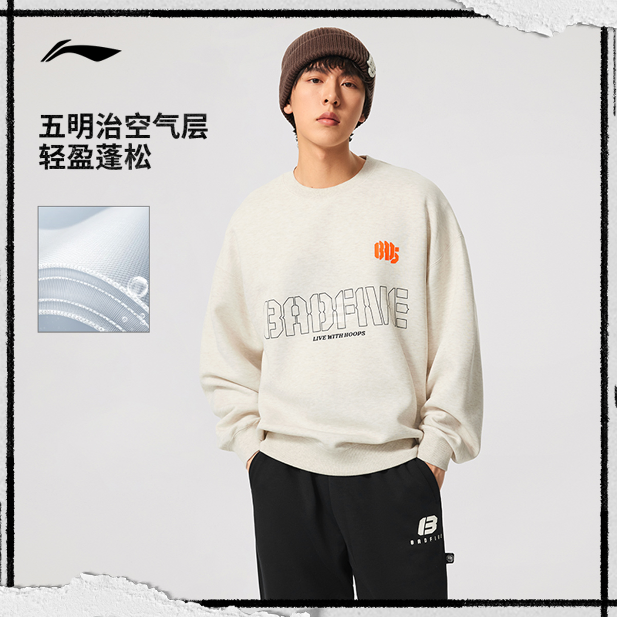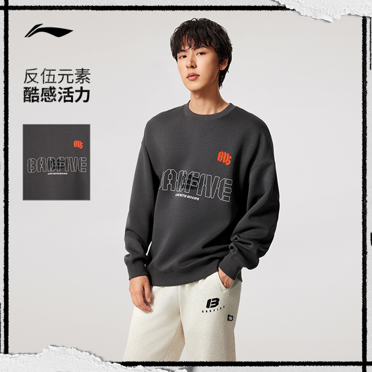 李宁反伍BADFIVE卫衣男士2025新款套头衫长袖圆领冬季上衣运动服