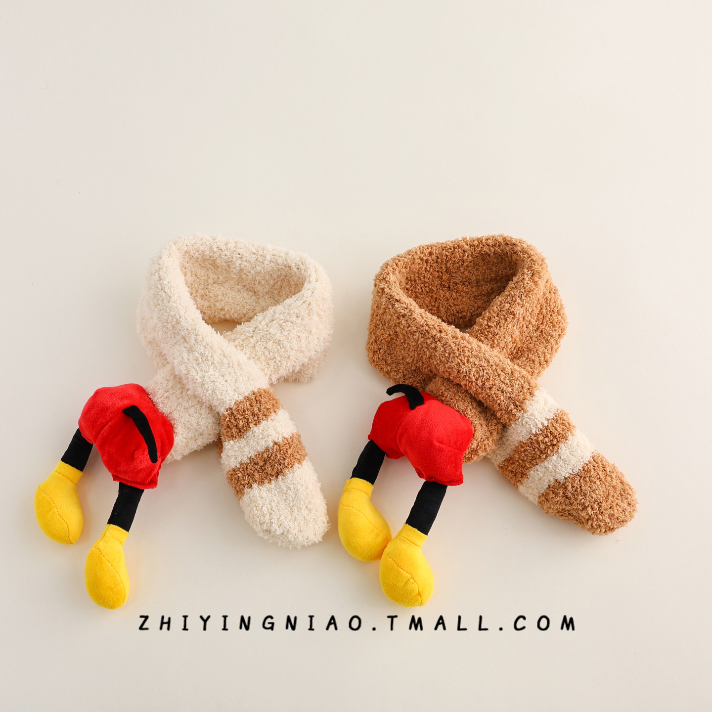 宝宝围巾秋冬季可爱超萌卡通交叉围脖小月龄外出防风保暖儿童脖套