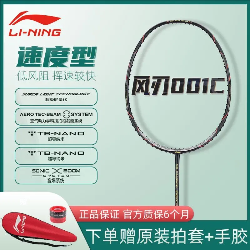 李宁官方羽毛球拍风刃001C速度型全碳素单拍战戟促销赠