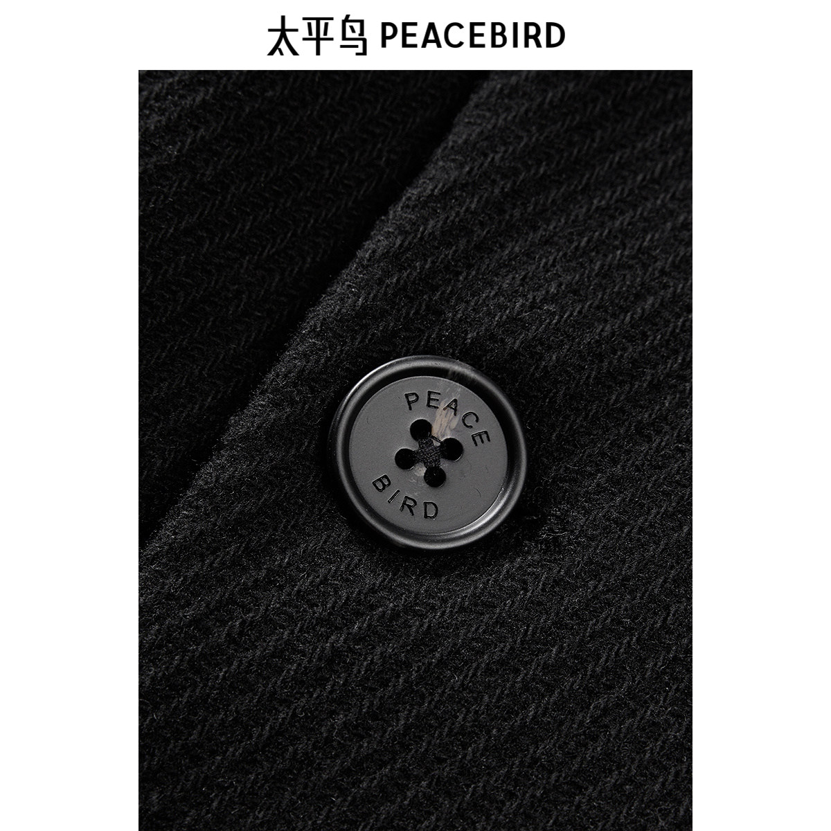 【商场同款】太平鸟男装 黑色休闲羊毛双面呢长款大衣男B1AAE4309