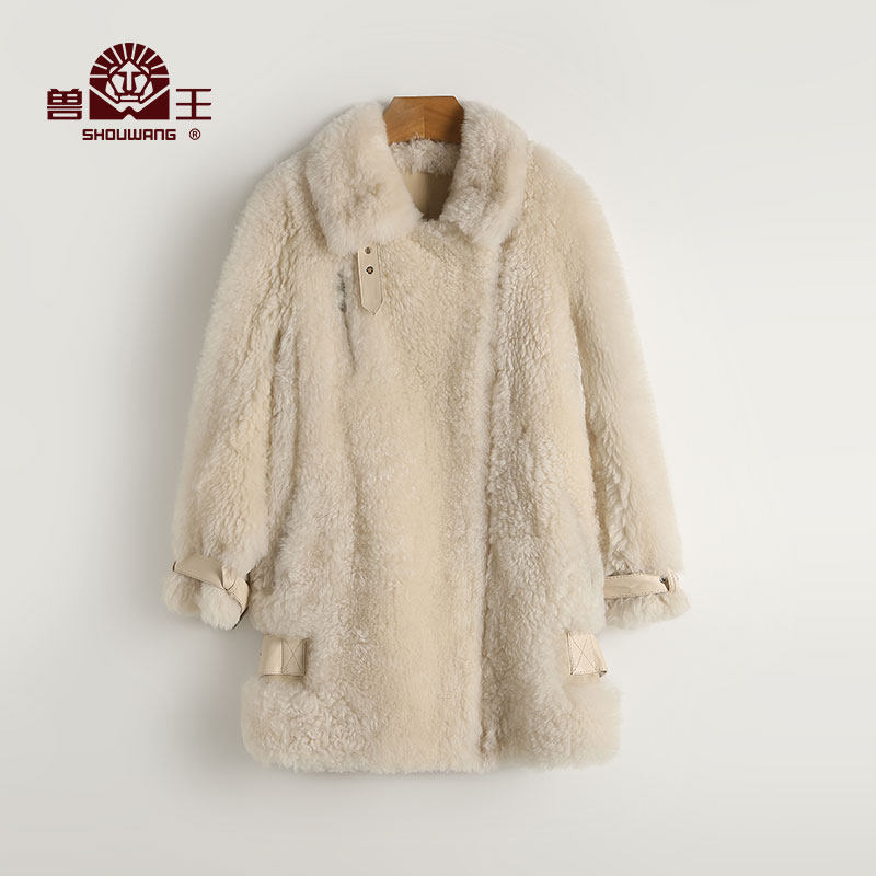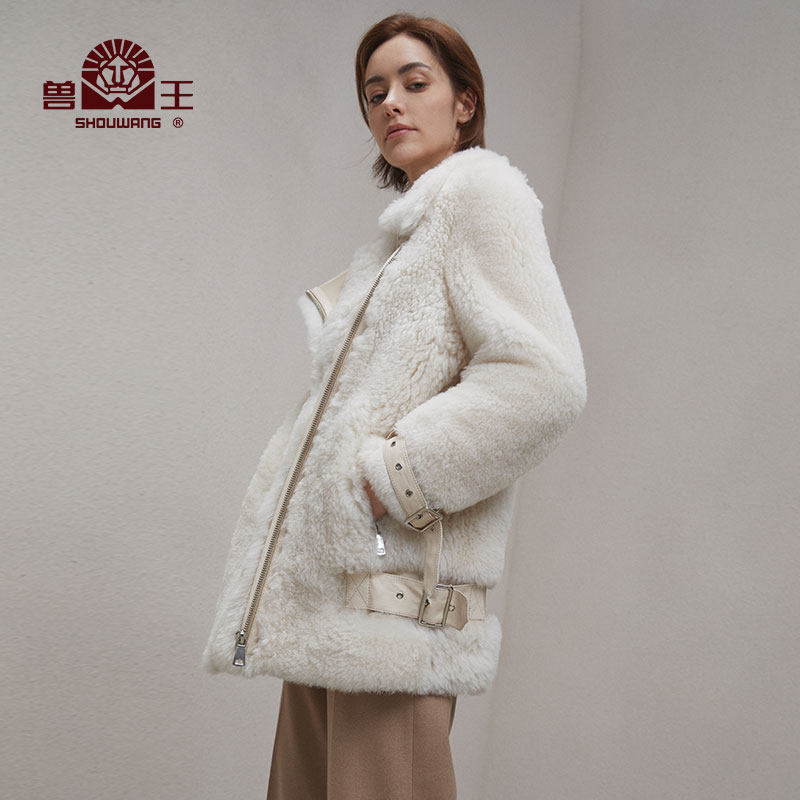 兽王秋冬新款女士羊皮毛一体海宁真皮皮衣中长款皮草大衣女