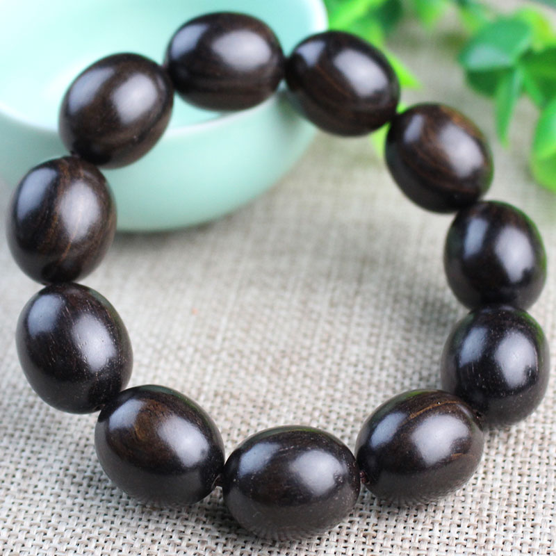天然黑檀木手串枣珠黑黄檀木料紫光檀木手链乌木老料沉香男女情侣